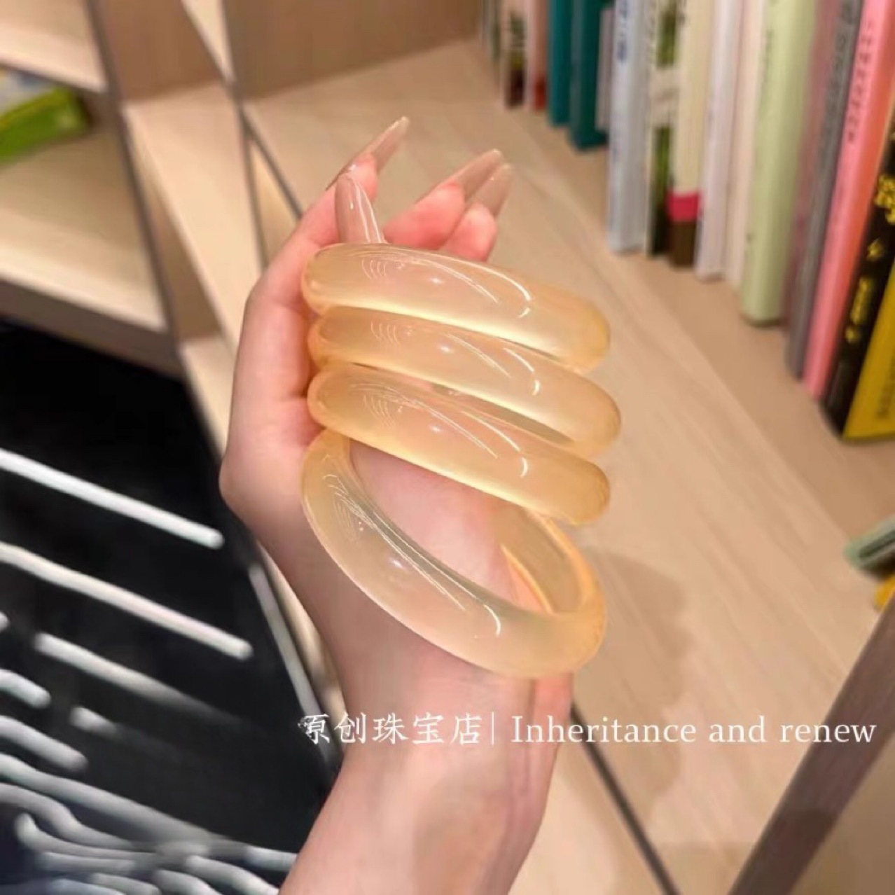 天然金丝玉桃花酿手镯粉色胖圆条手镯高级感美人镯飘花手镯批发