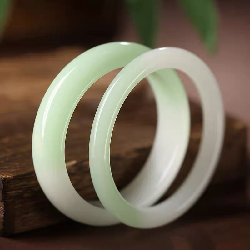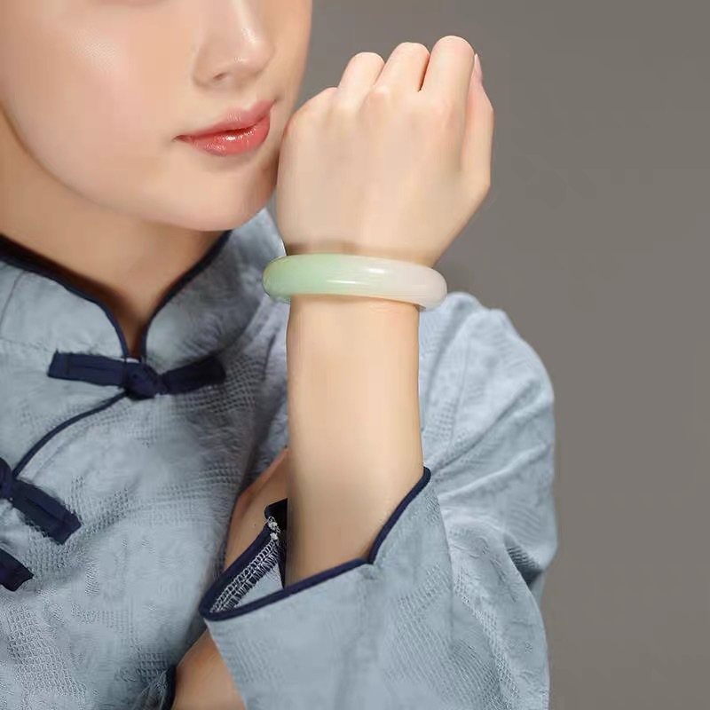 外モンゴル素材ブレスレット、高模倣ホータン翡翠、湖水緑ワイドストリップ、古代シアンクリアウォーター細い丸ストリップブレスレット、ヤングモデルバッチ
