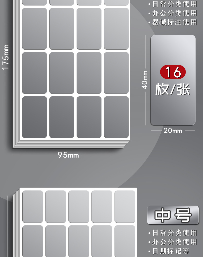 亚银标签纸不干胶收纳贴纸手写撕不烂贴防水防油哑银分类标记银色