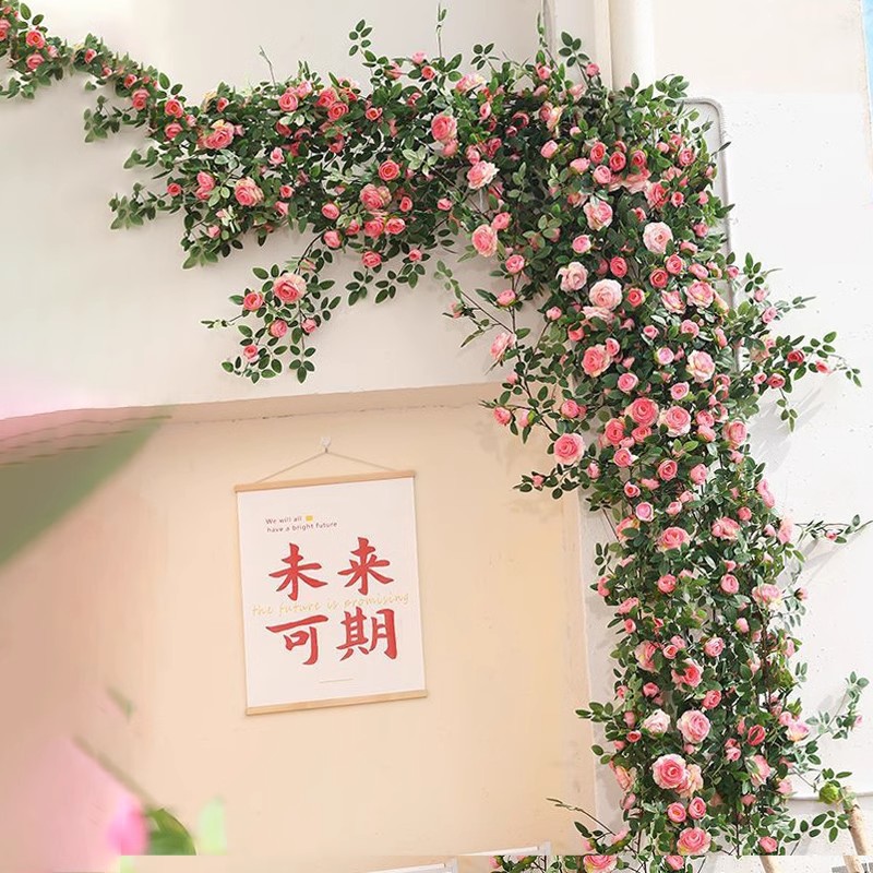造花のバラのつる、プラスチック製の偽物の花、茶色のバラのつる、編み込みの棒、藤の森風の結婚式場の装飾、エアコンの壁掛け飾り