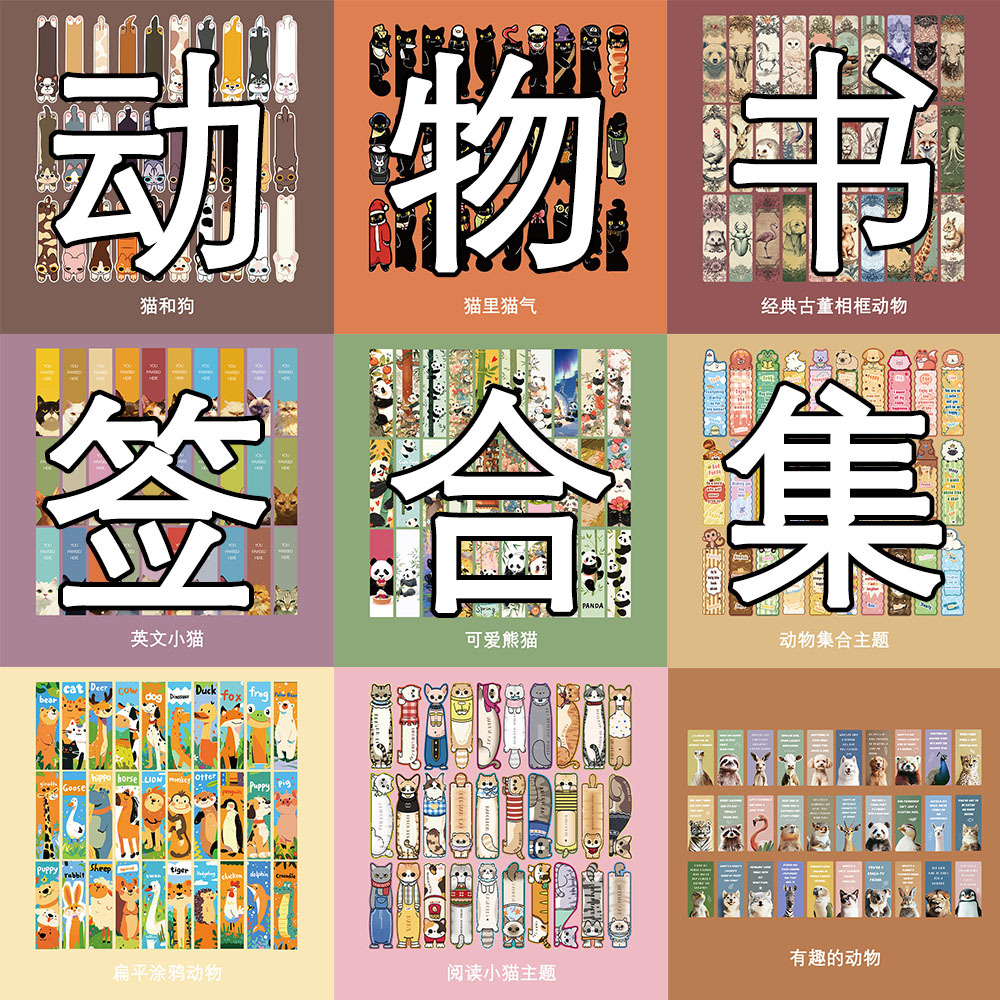 マイクロインクは30枚の動物のしおり漫画パンダ犬猫学生が記録紙の美しいしおりを読んでいる