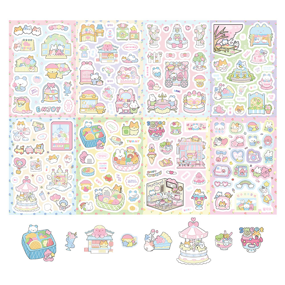 8種類の春日旅行タイルかわいいアニメ落書きDIY手帳携帯電話ノートパソコン装飾防水シール