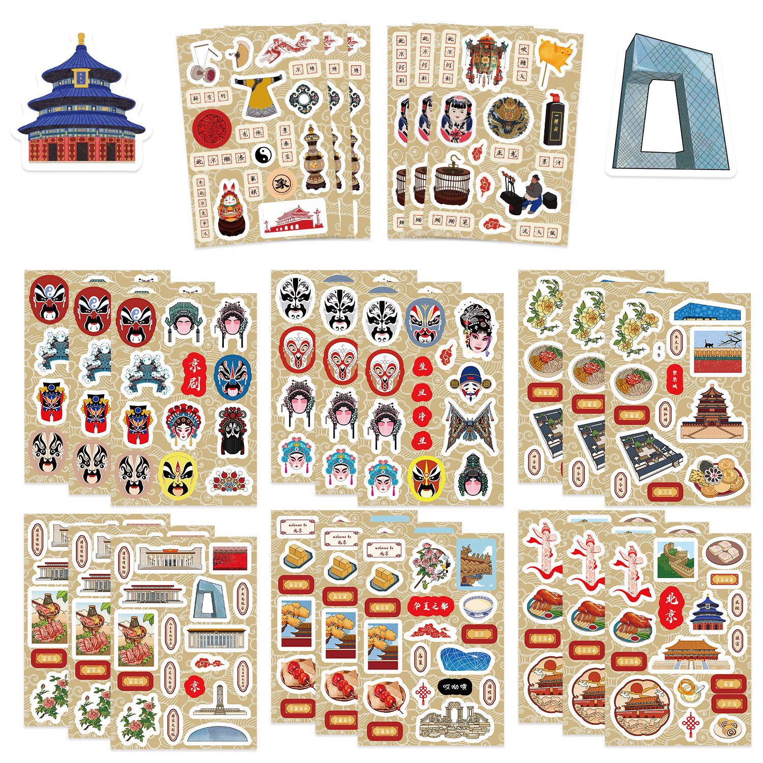 8枚北京文旅シール創意特色文化DIY手帳装飾素材ノート防水ステッカー