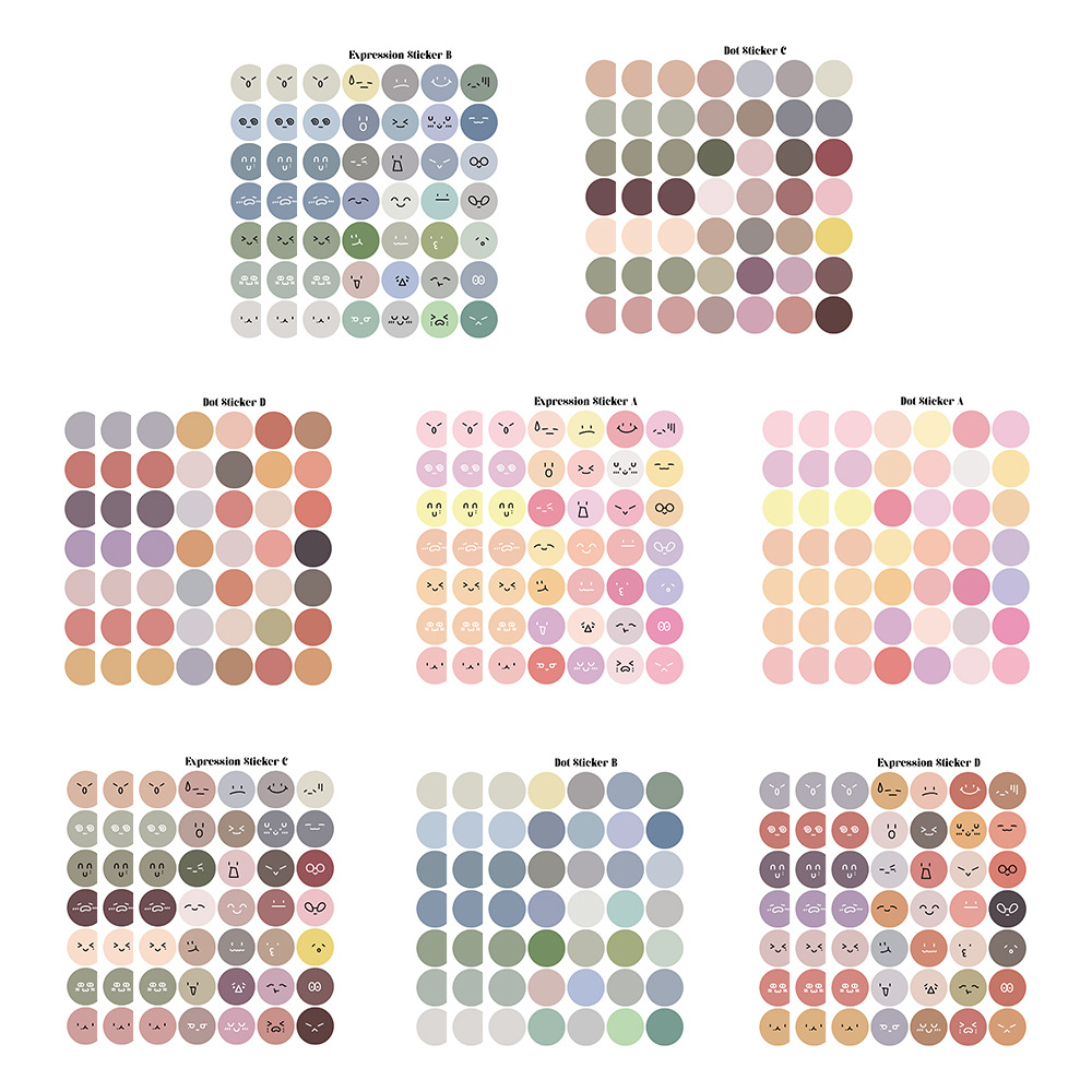 8種類の純色の丸い点の表情はカラーの笑顔の学生のマークを貼ります。