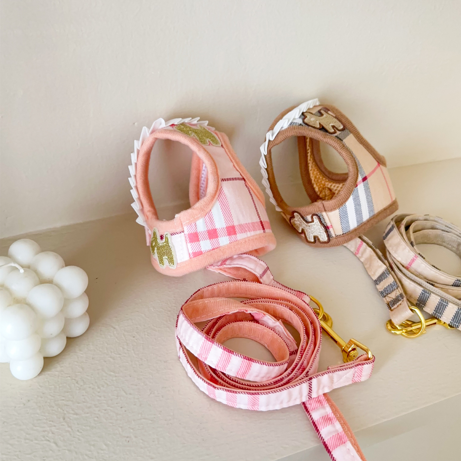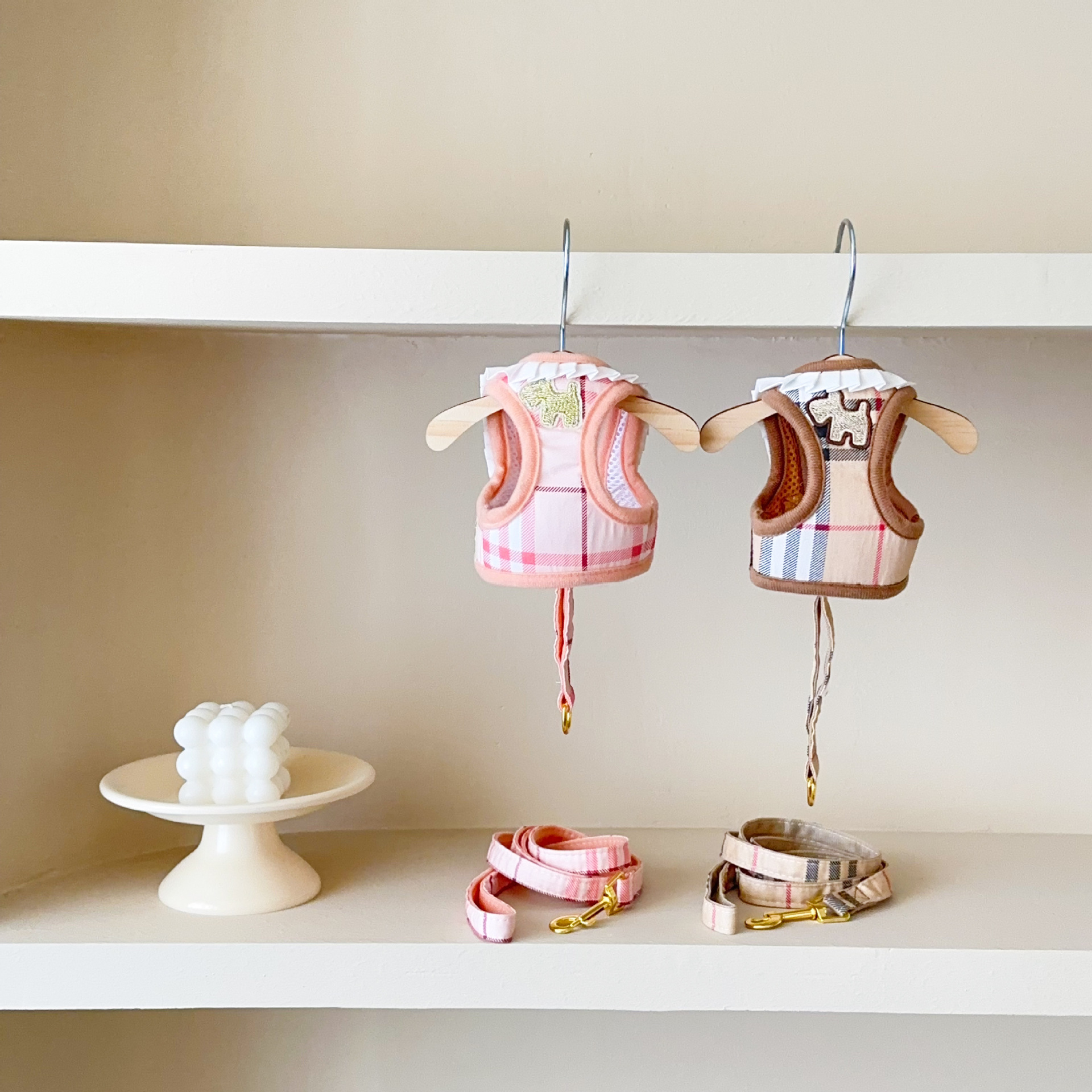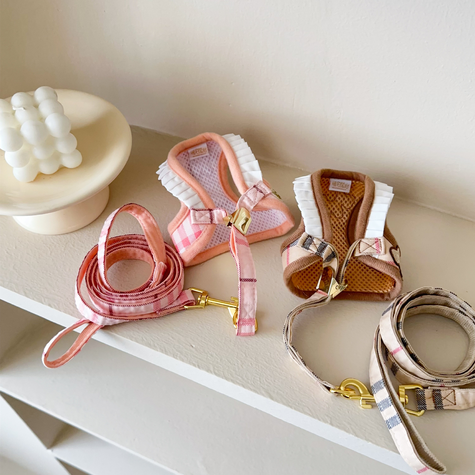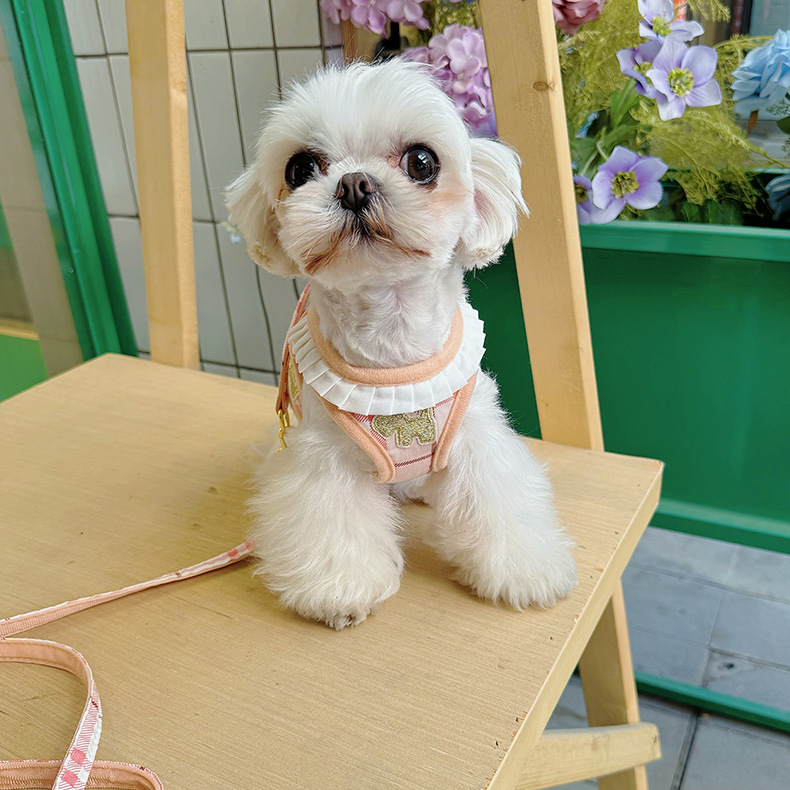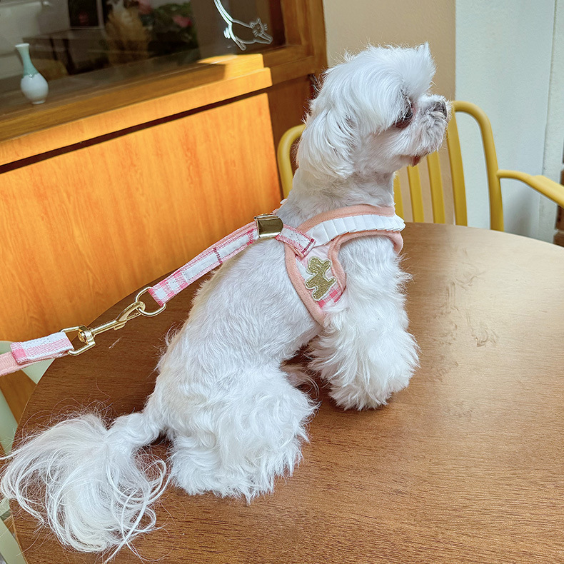 25春夏新作小香風ペット犬猫服式胸背中牽引セット牽引紐付き