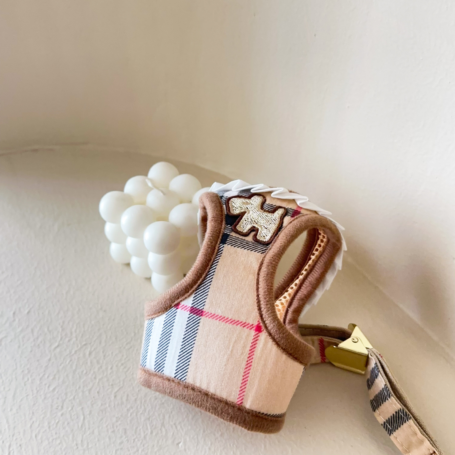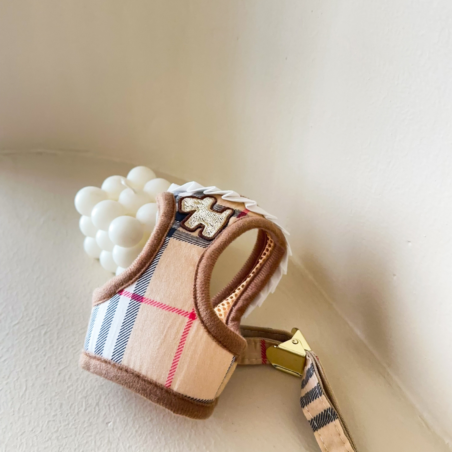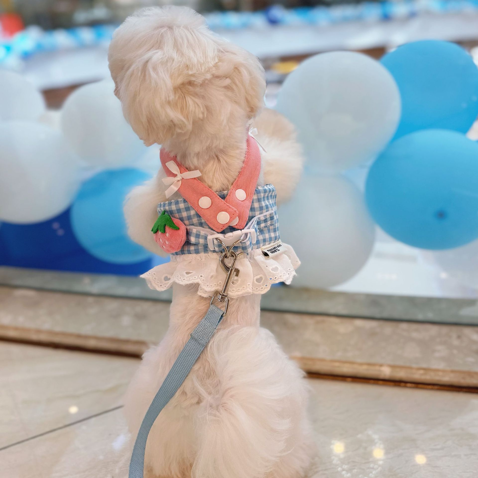 25春夏新作小香風ペット犬猫服式胸背中牽引セット牽引紐付き