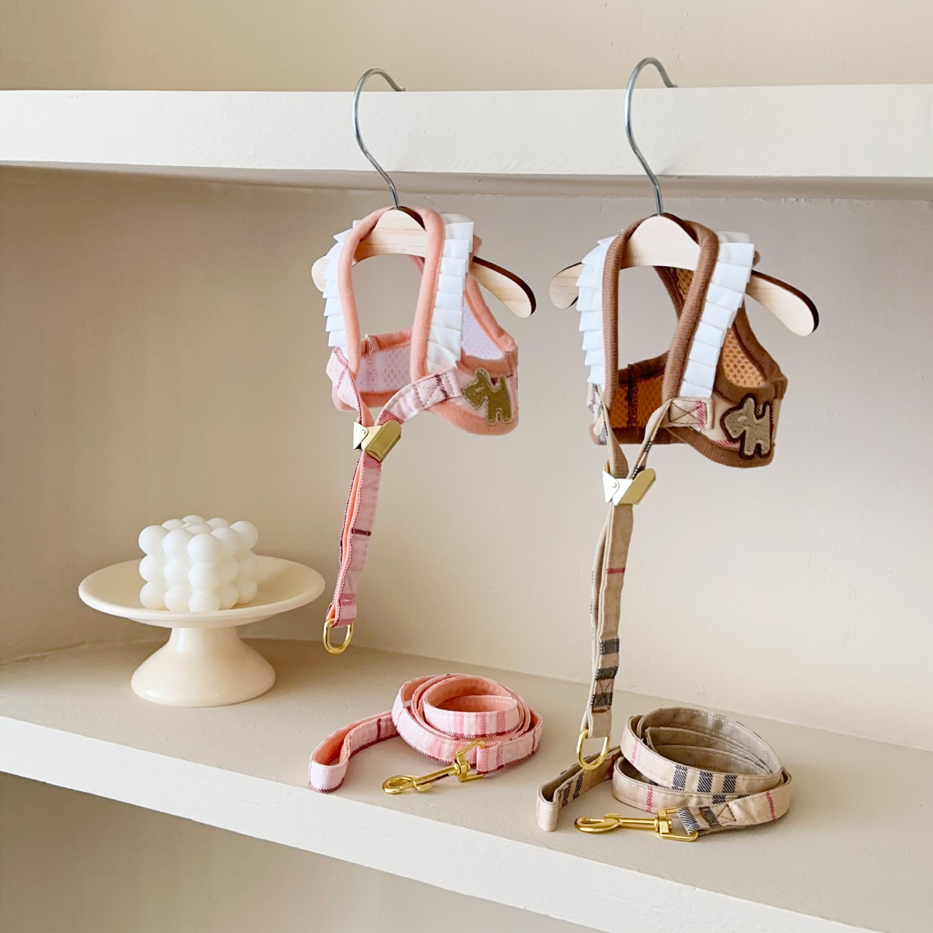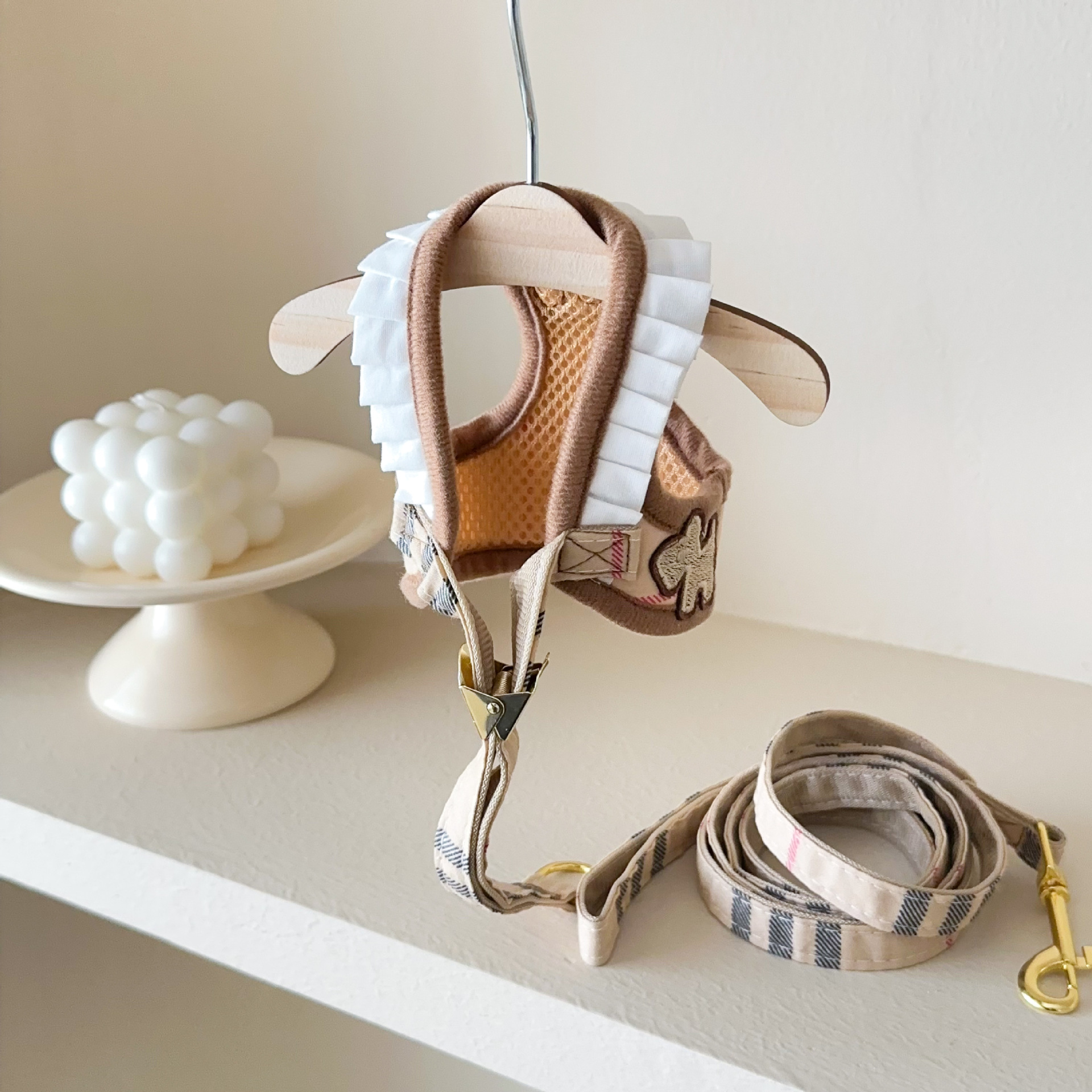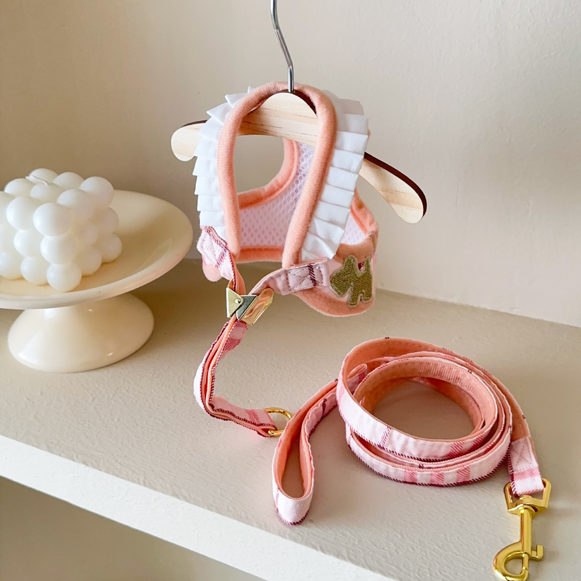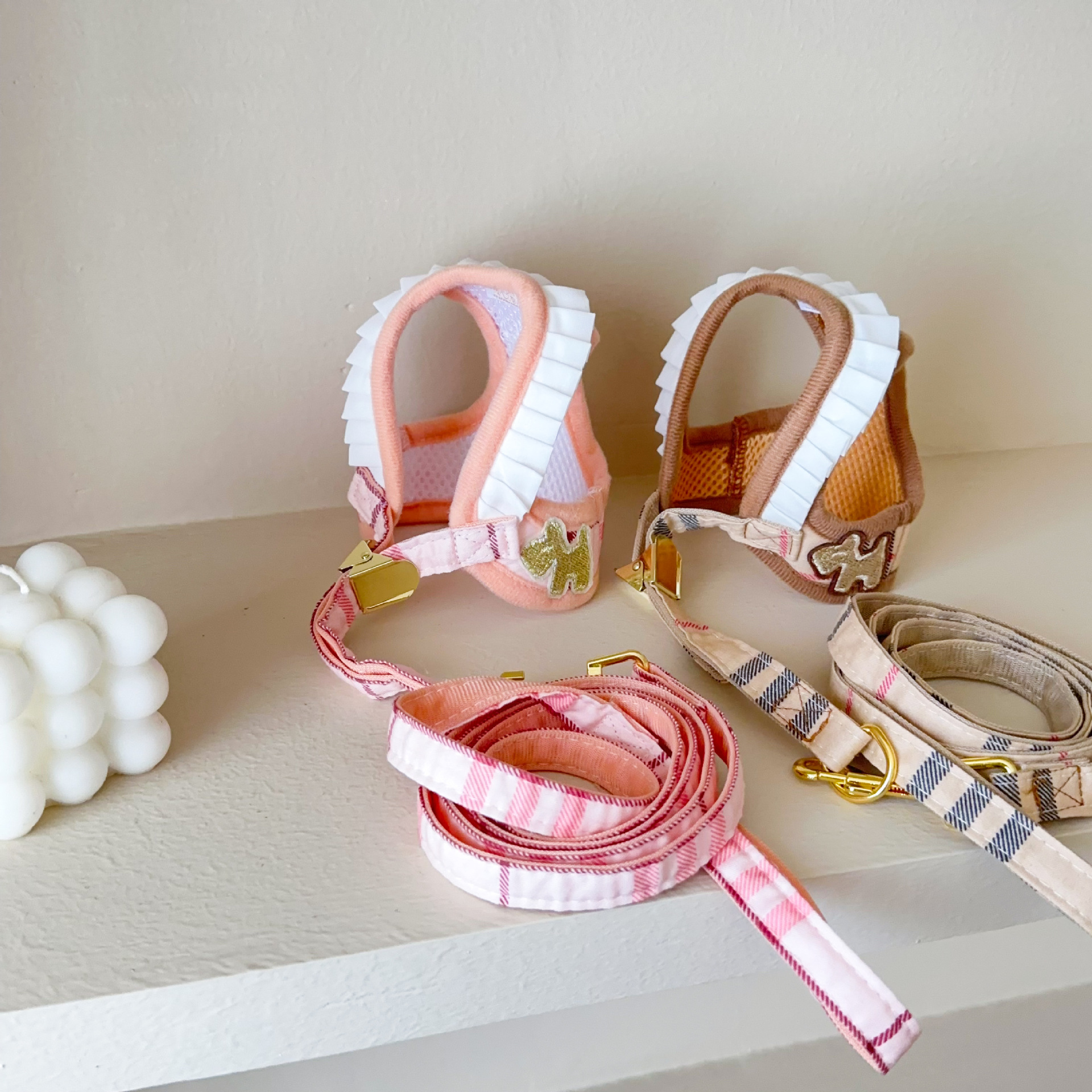 25春夏新作小香風ペット犬猫服式胸背中牽引セット牽引紐付き