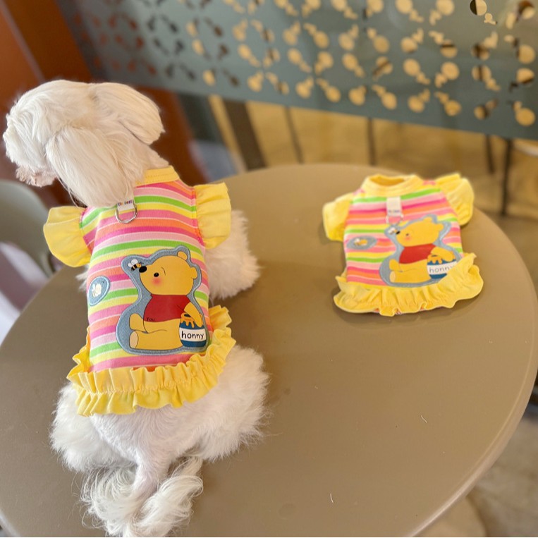 25秋冬新款宠物狗狗猫咪奶狗衣服 条纹小熊飞袖款可牵引