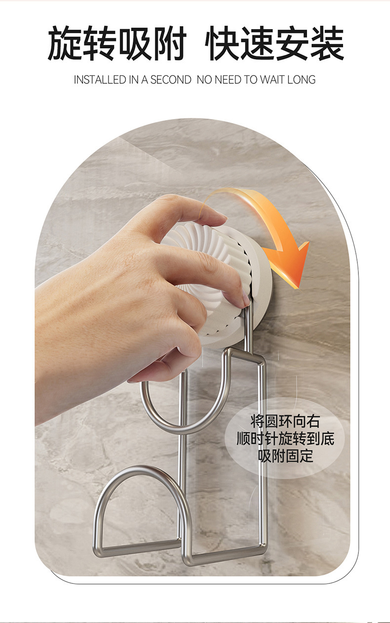 回転ステンレス吸盤洗面器ラック穴なし壁掛け式洗面器浴室盆フック収納棚