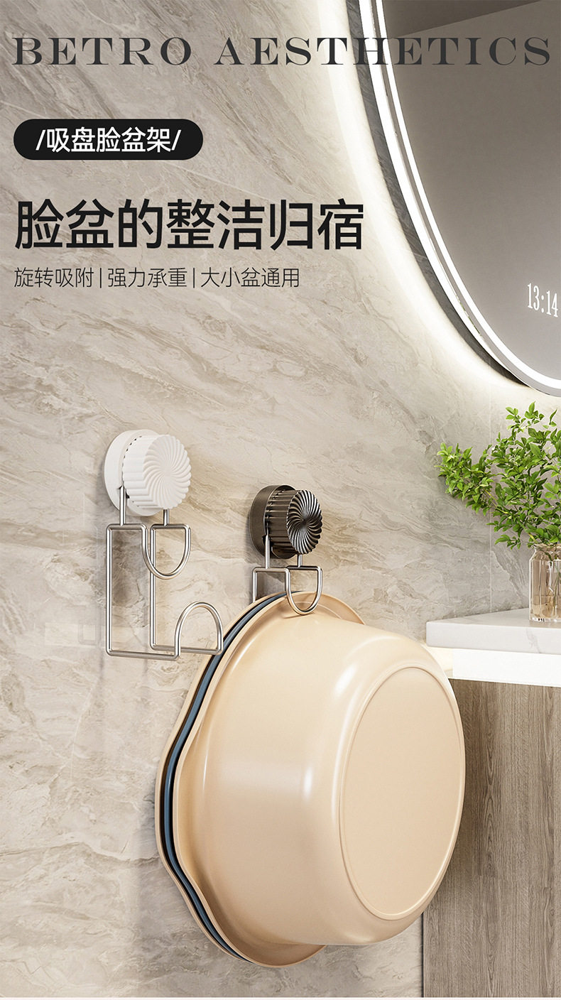 吸盤鉄芸洗面器フック浴室トイレ洗面器収納棚多目的フック穴なし壁掛け吸盤