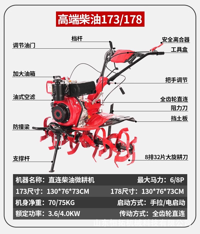 微耕机小型多功能全齿轮柴油汽油松土机起垄除草旋耕机开沟耕地机