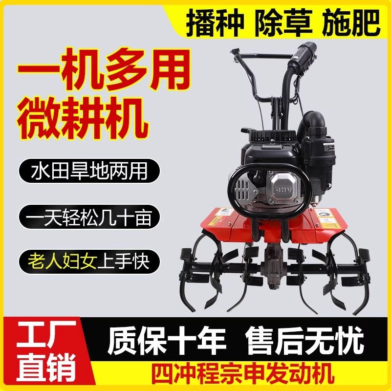 新款微耕机小型汽油家用四冲程松土水田锄草开沟机翻地开荒旋耕机