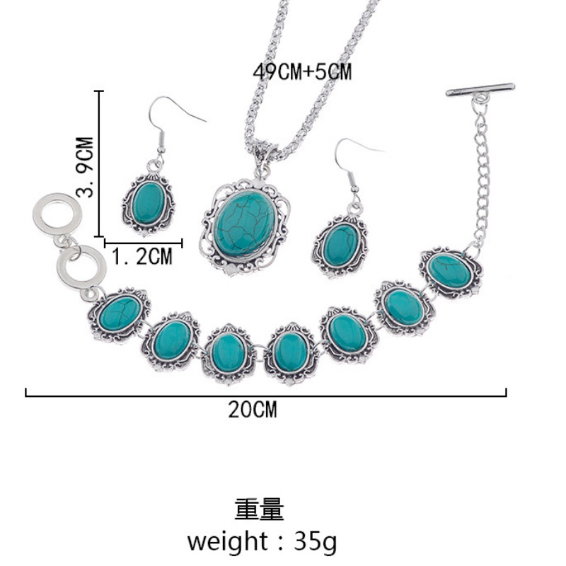 国境を越えた欧米の新しい緑松石ネックレスイヤリングボヘミアン復古松石ブレスレット民族風ジュエリーセット