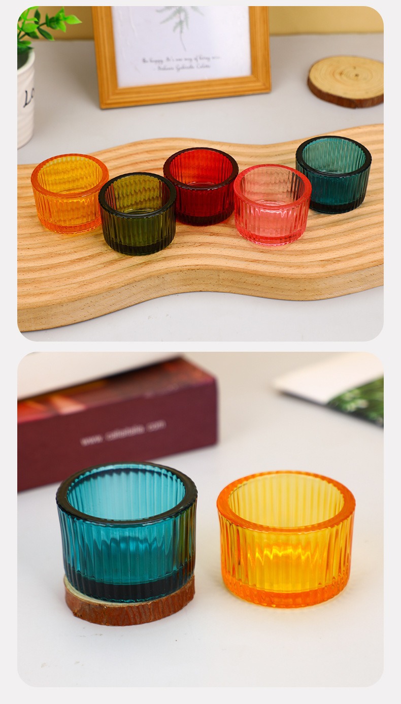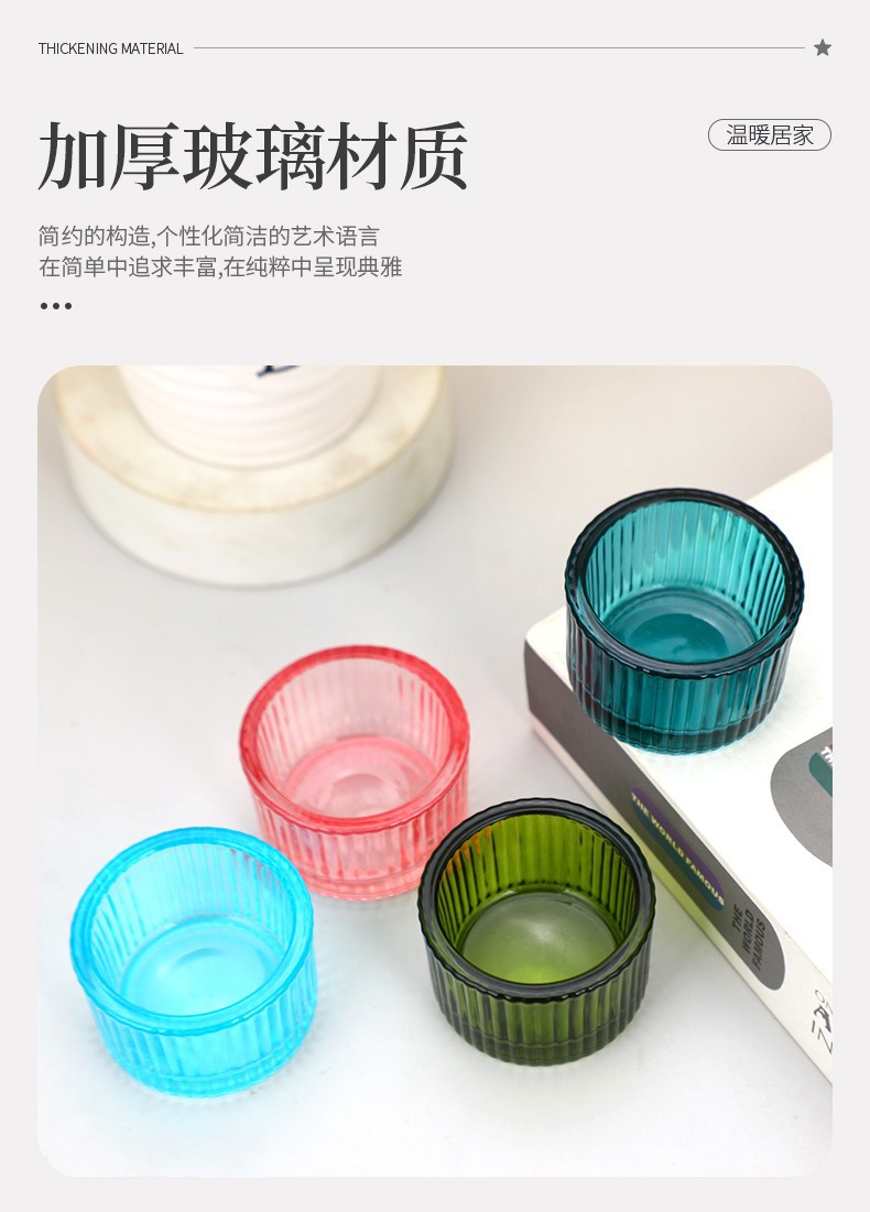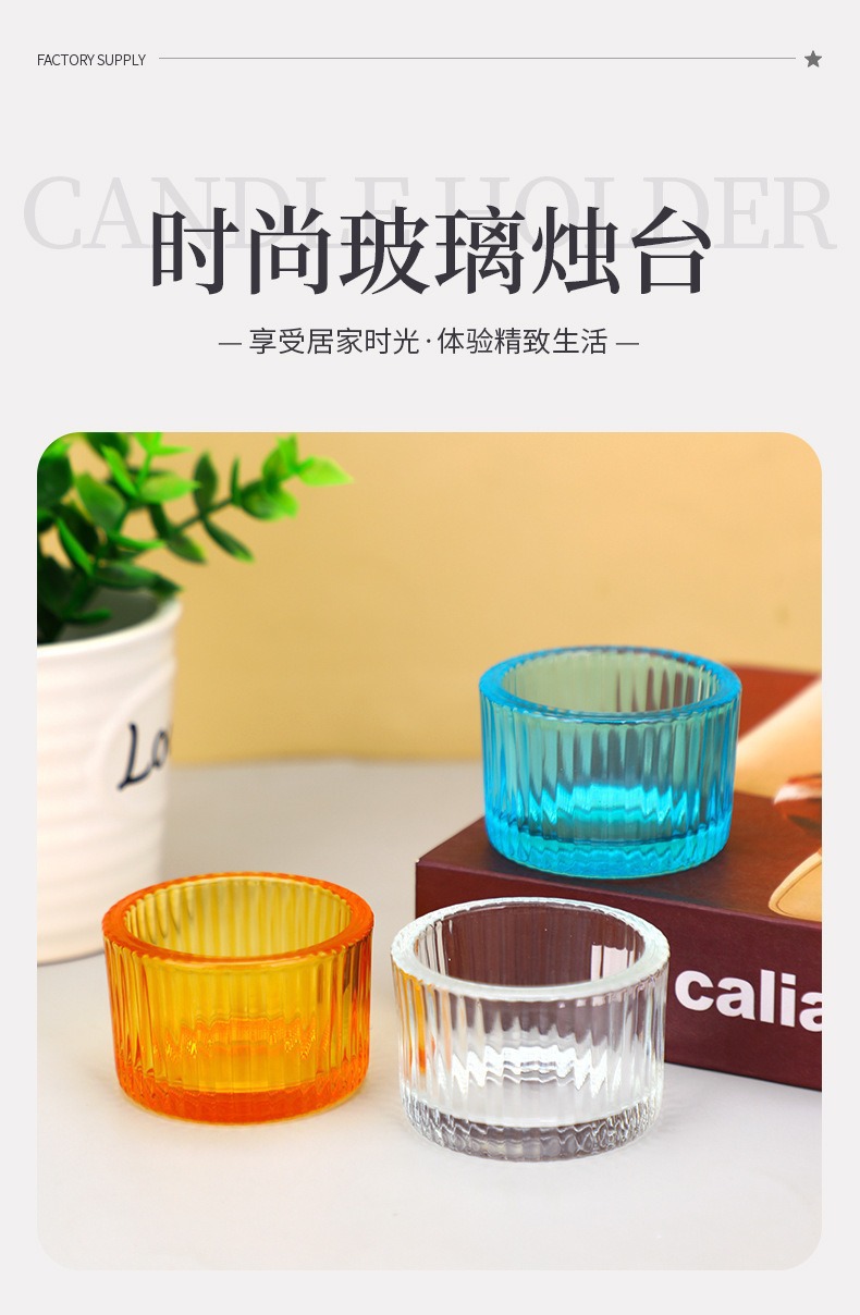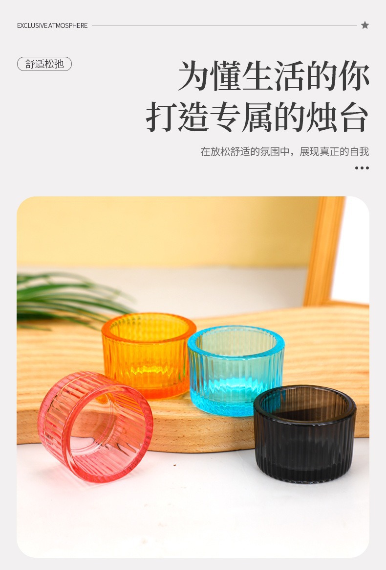 彩色玻璃蜡烛杯简约ins风竖纹玻璃香薰蜡烛杯浪漫烛台摆件香薰杯