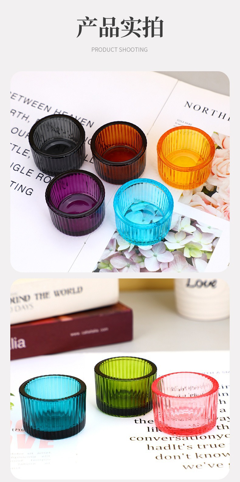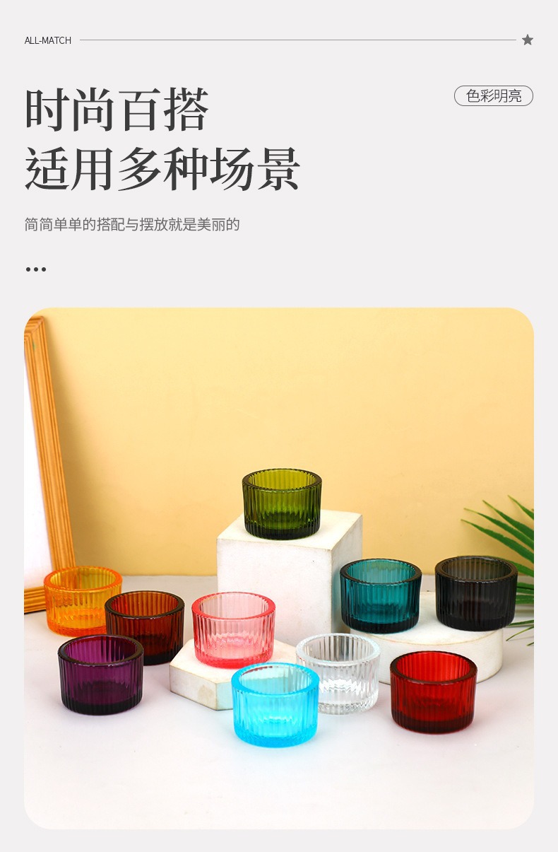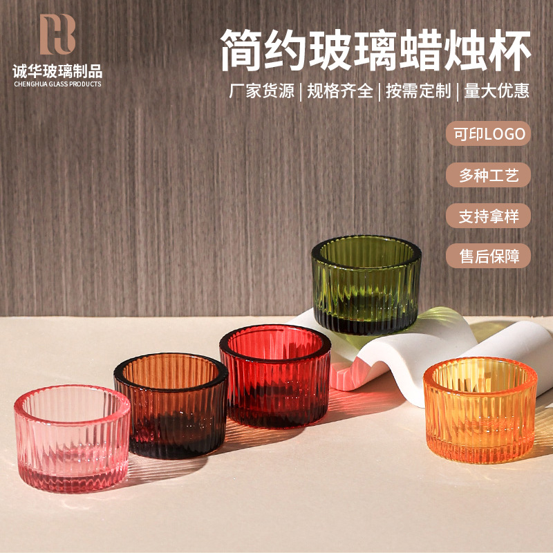 彩色玻璃蜡烛杯简约ins风竖纹玻璃香薰蜡烛杯浪漫烛台摆件香薰杯
