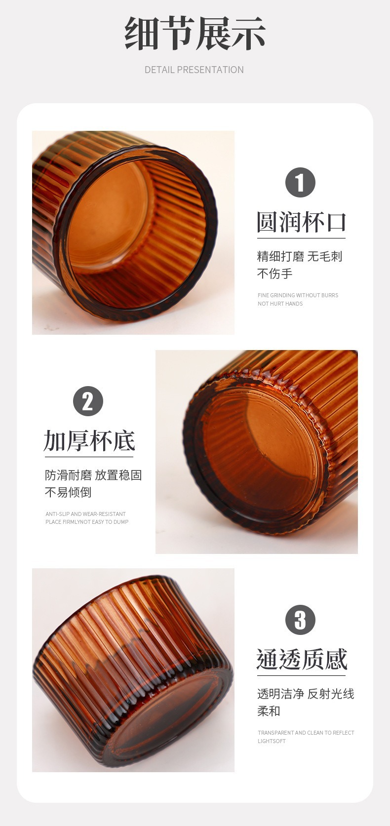 香薰蜡烛玻璃杯时尚竖条纹蜡烛罐浪漫烛光晚餐布置烛台杯香薰空杯