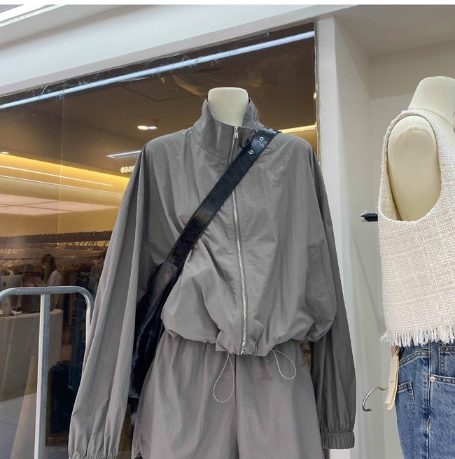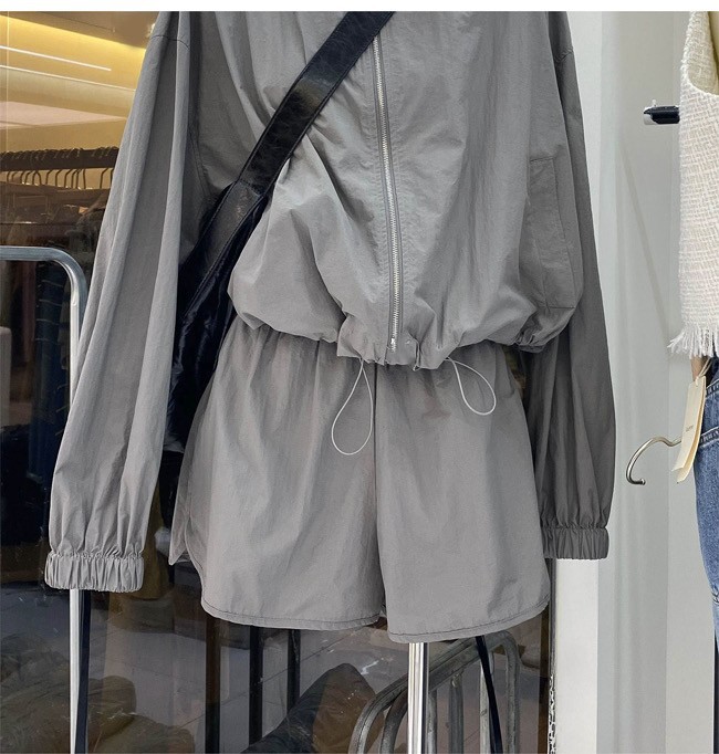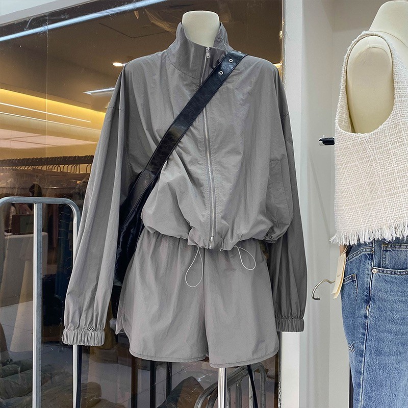 アメリカのカジュアルな日焼け止め服セット女性ファッションスポーツ風の襟をめくってひもを引きます。