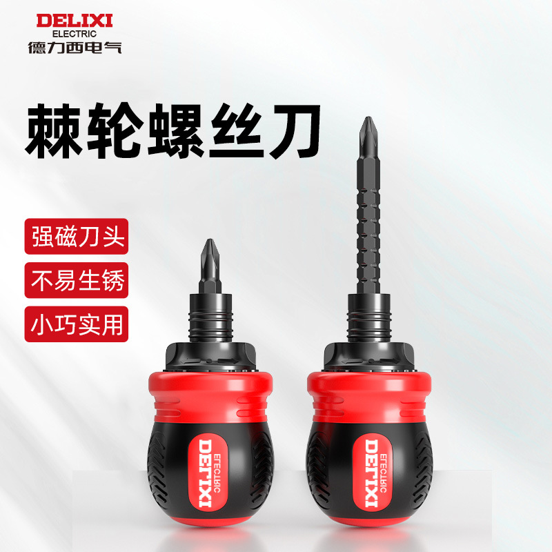 德力西电气棘轮螺丝刀两用伸缩异形批头十字一字小型螺丝刀套装