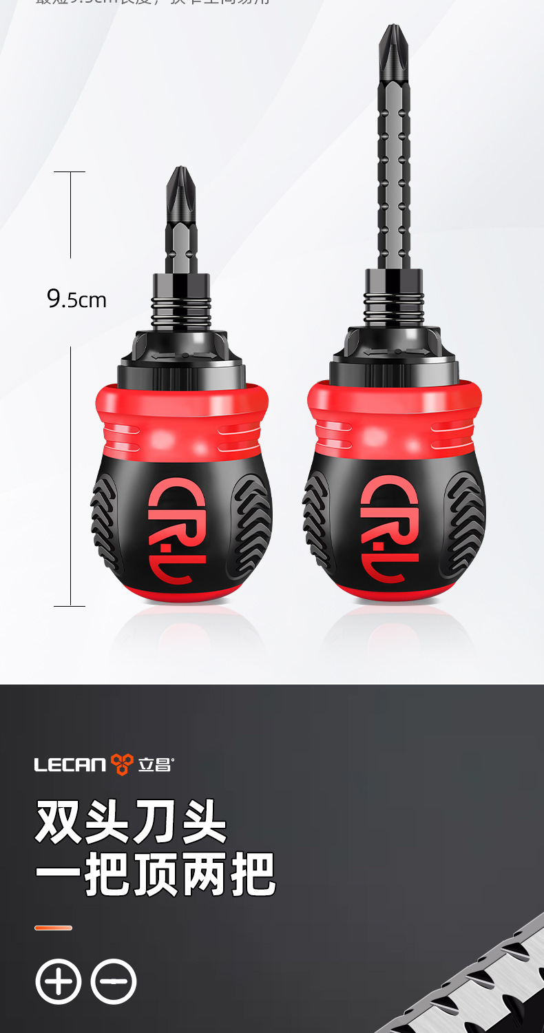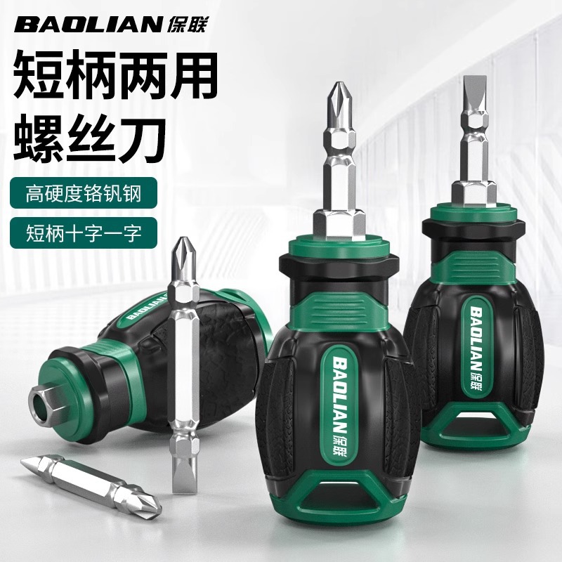 保联两用螺丝刀短柄萝卜头迷你十字一字强磁批头双头多功能起子