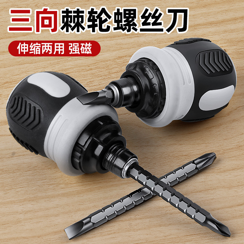 棘轮两用螺丝刀十字一字两用迷你改锥可伸缩省力多功能螺丝刀