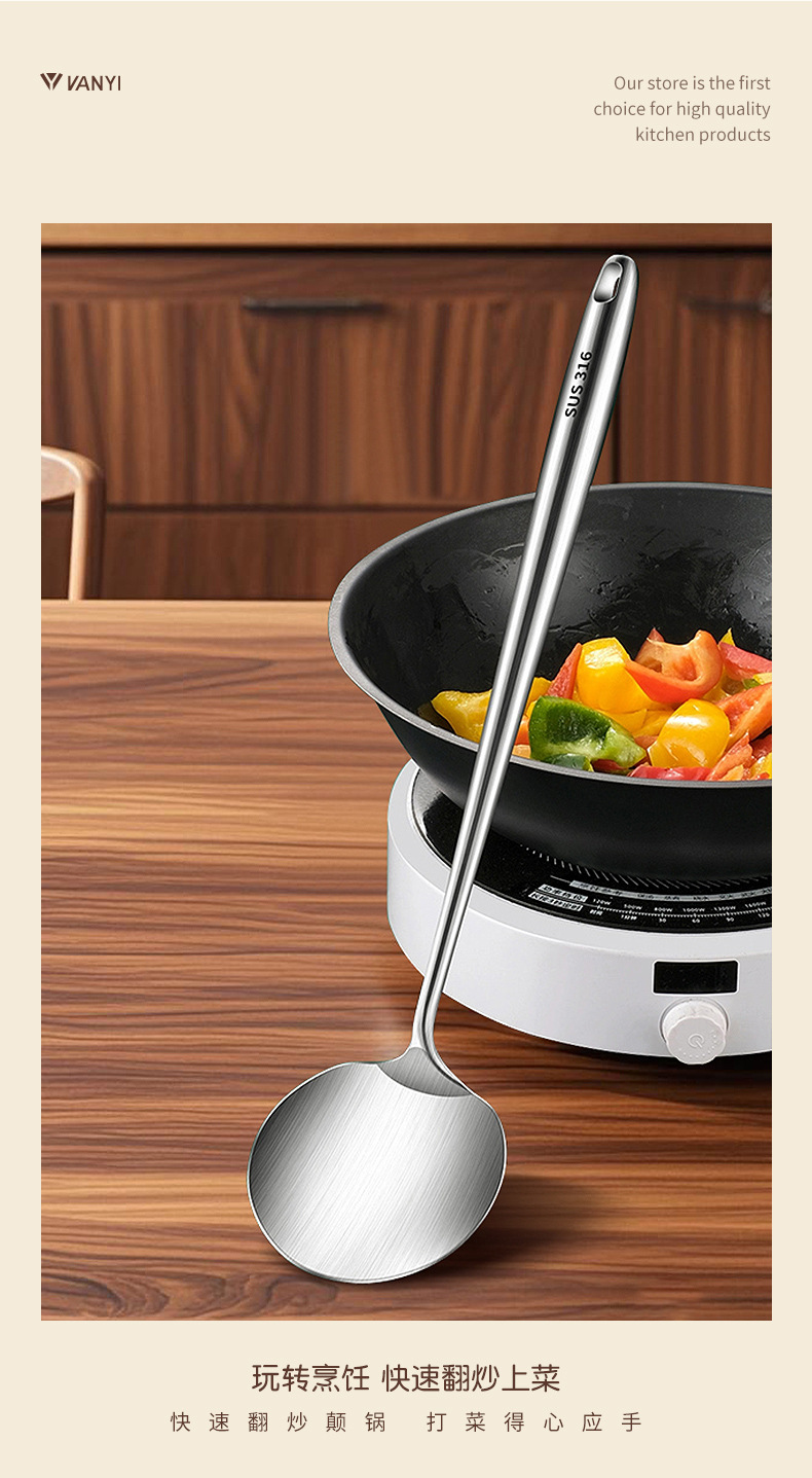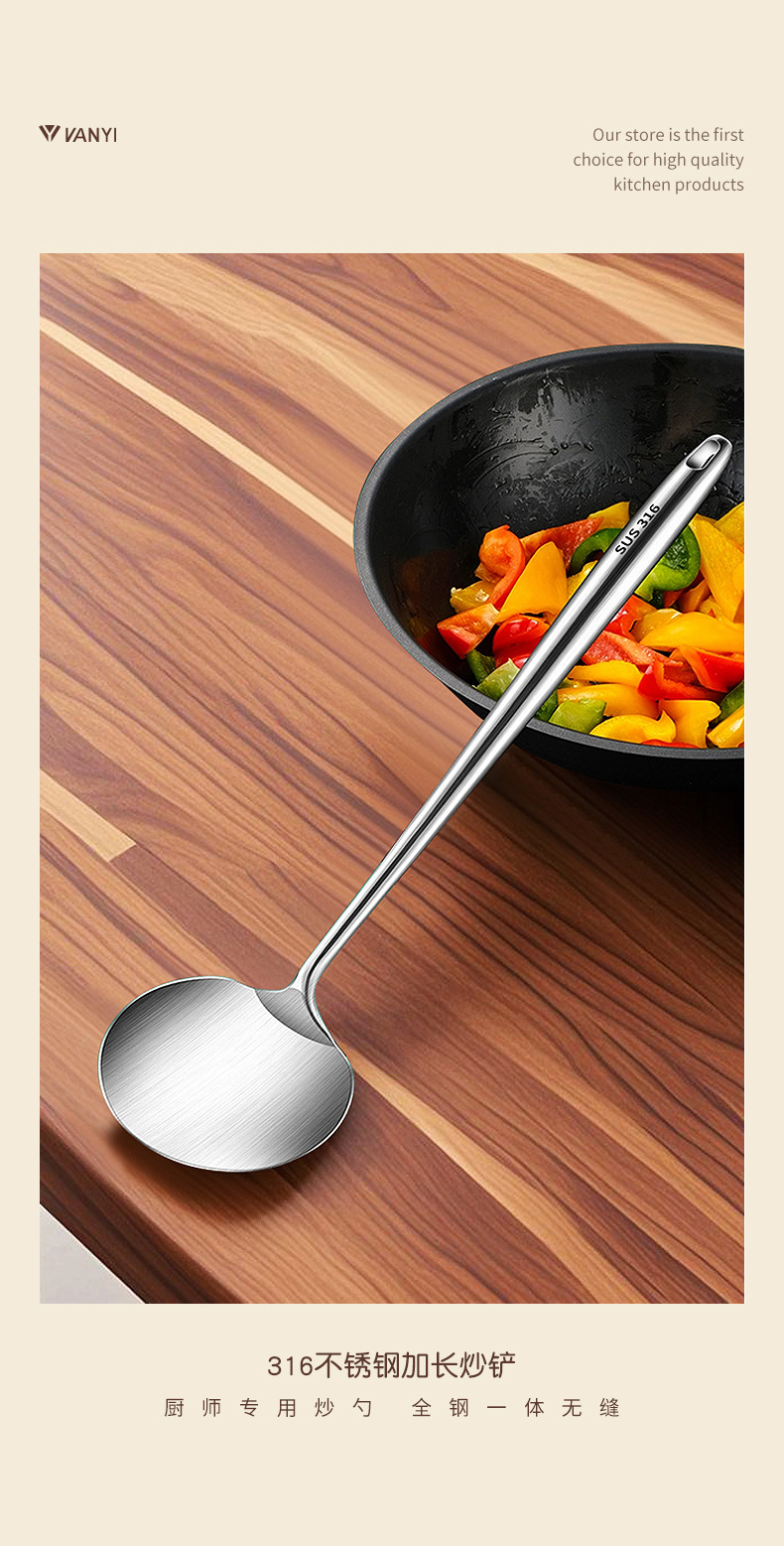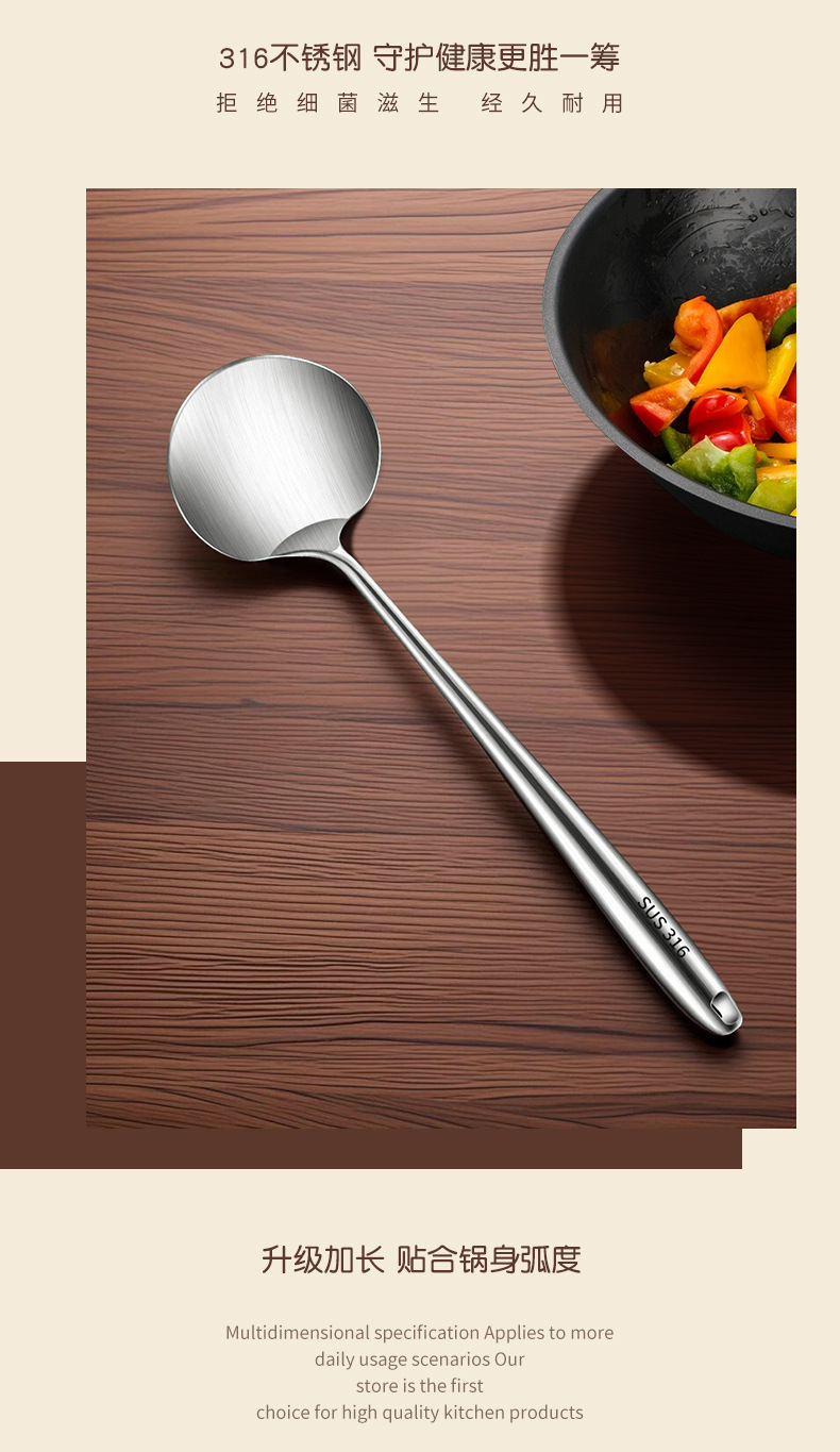 316ステンレス鍋シャベル炒めシャベル家庭用キノコシャベル料理人と長柄専用スプーン
