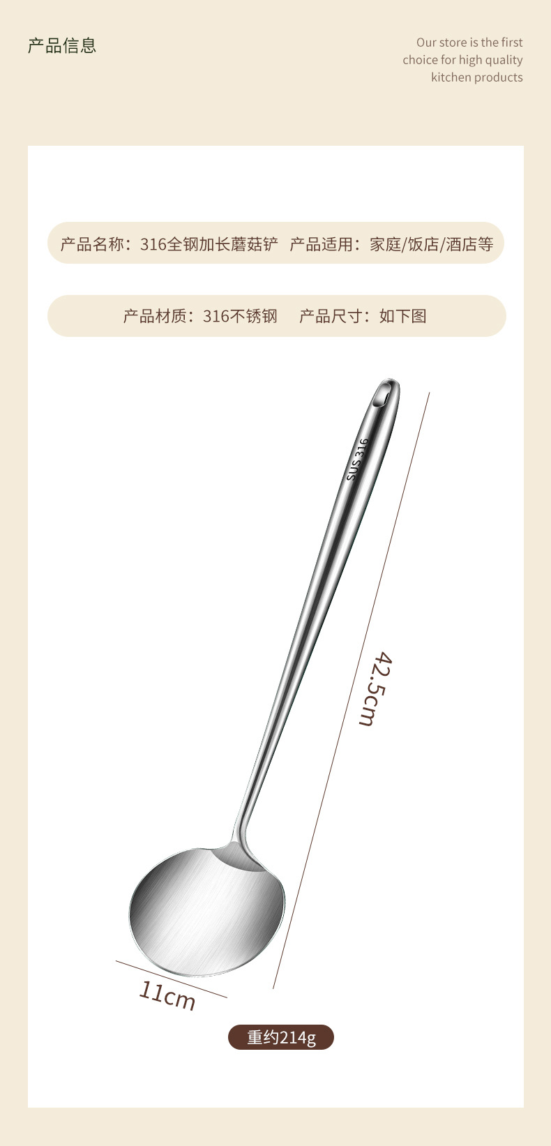 316ステンレスシャベル炒めスプーン鍋シャベルキノコ頭シャベル専用スプーン調理器具延長一体丸炒めスプーン