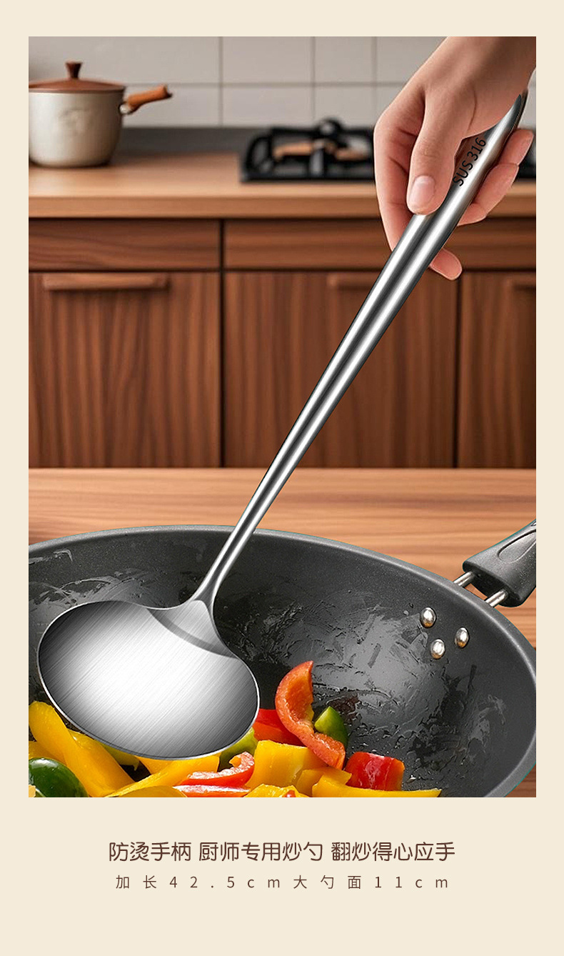 三四钢炒菜勺子316L不锈钢锅铲铲子汤勺贵州家用长柄炒勺蘑菇铲