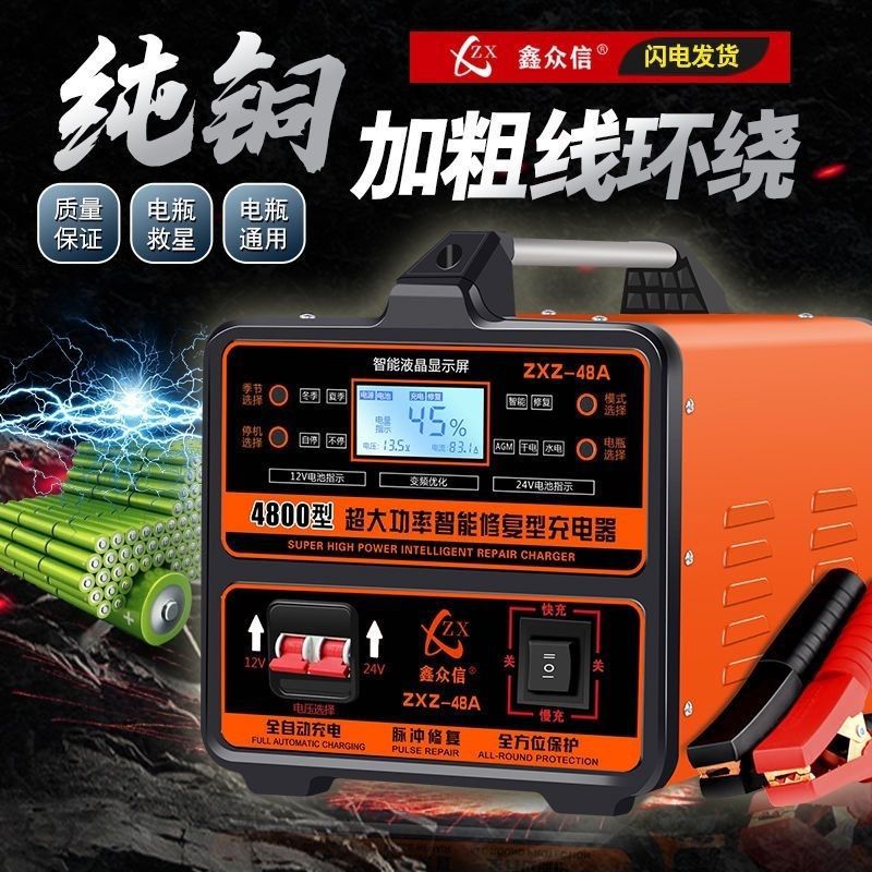 汽车摩托车电瓶充电器12v24v纯铜智能修复蓄电池充电机充满