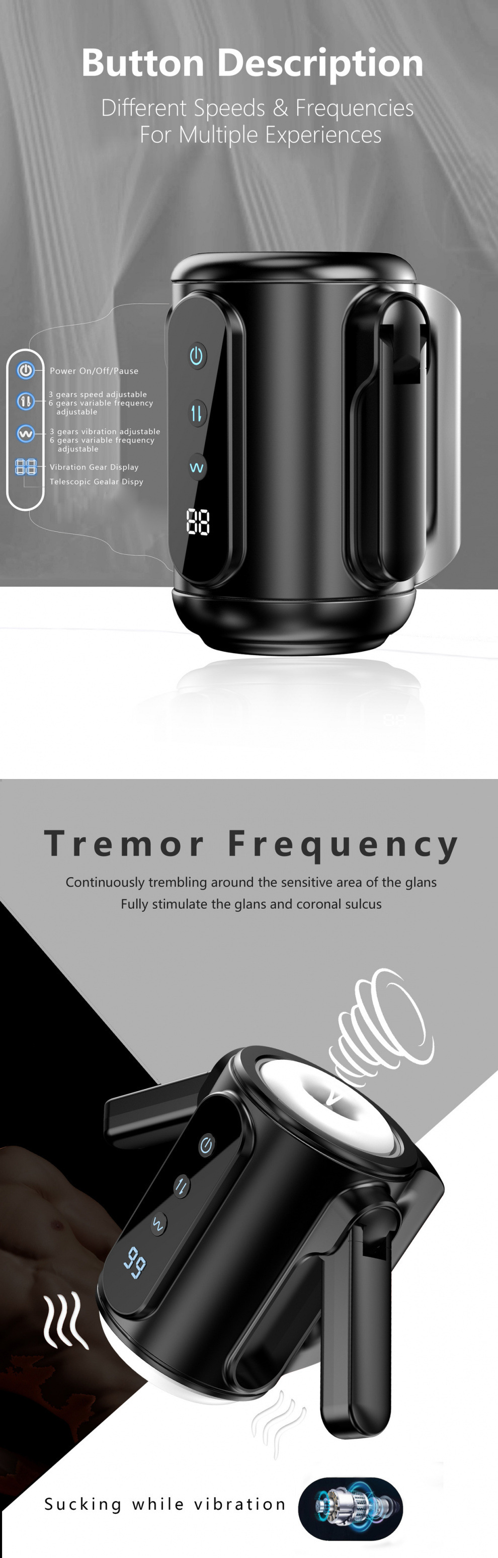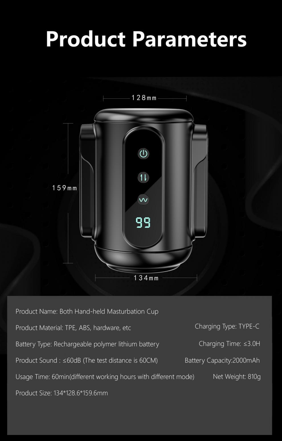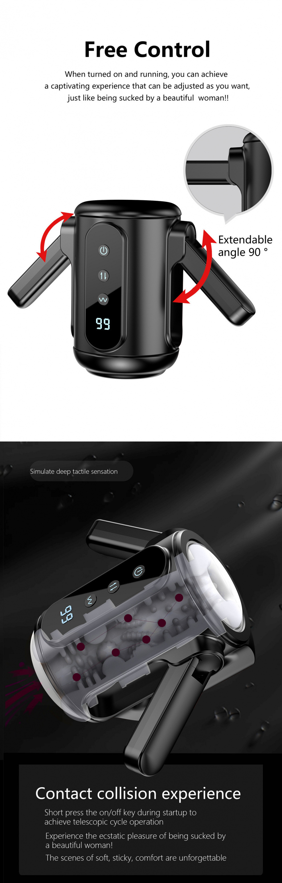 男性用ダブルハンドル飛行機カップ、全自動伸縮式振動LCDディスプレイオナニー大人用ロボット飛行機カップ