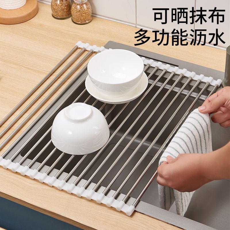キッチンシンク排水ラック折りたたみ式ロールカーテン多機能新型ステンレスシンク物置ラック水切りラック