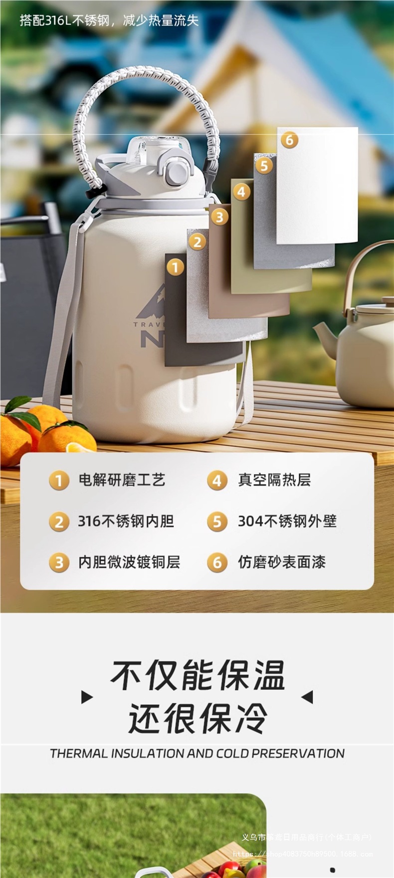 大容量保温杯25新款保冷杯吨桶吨户外便携运动水壶水杯子2000ML无