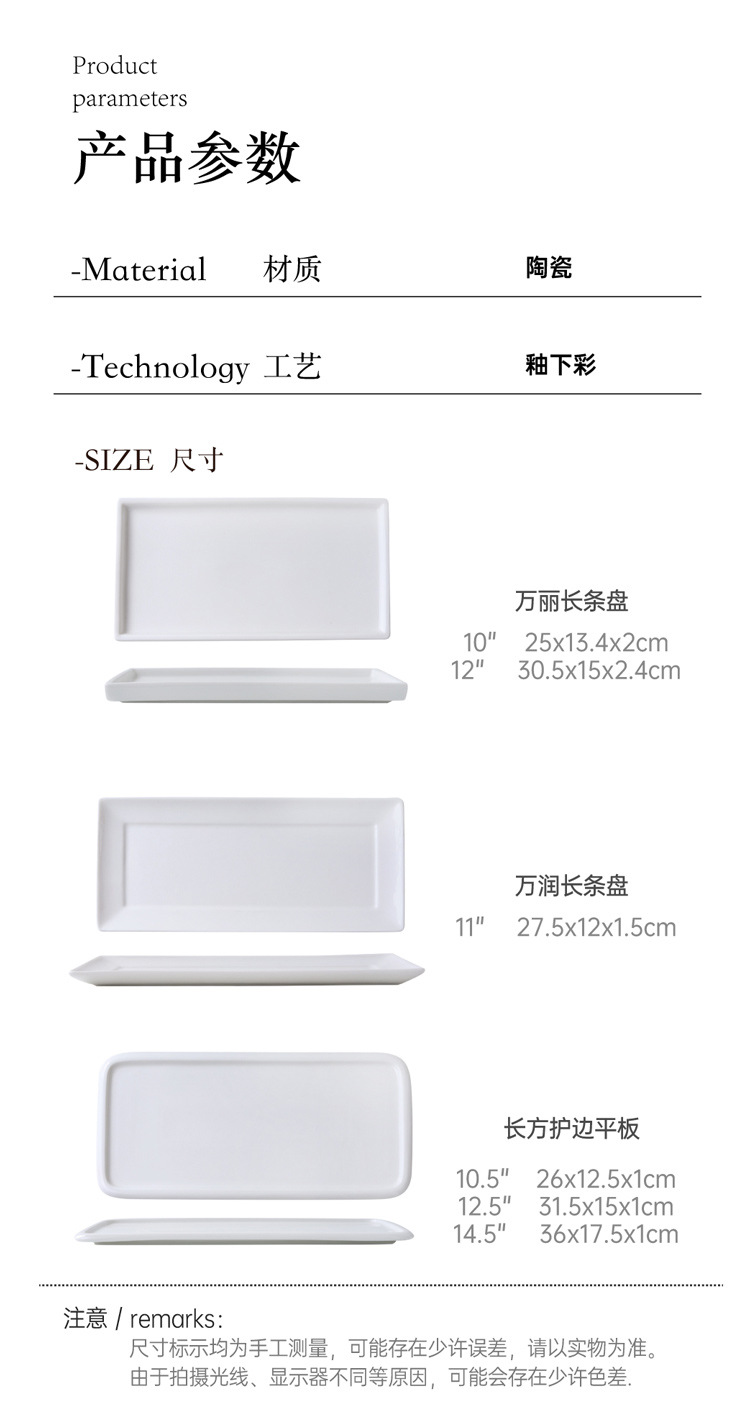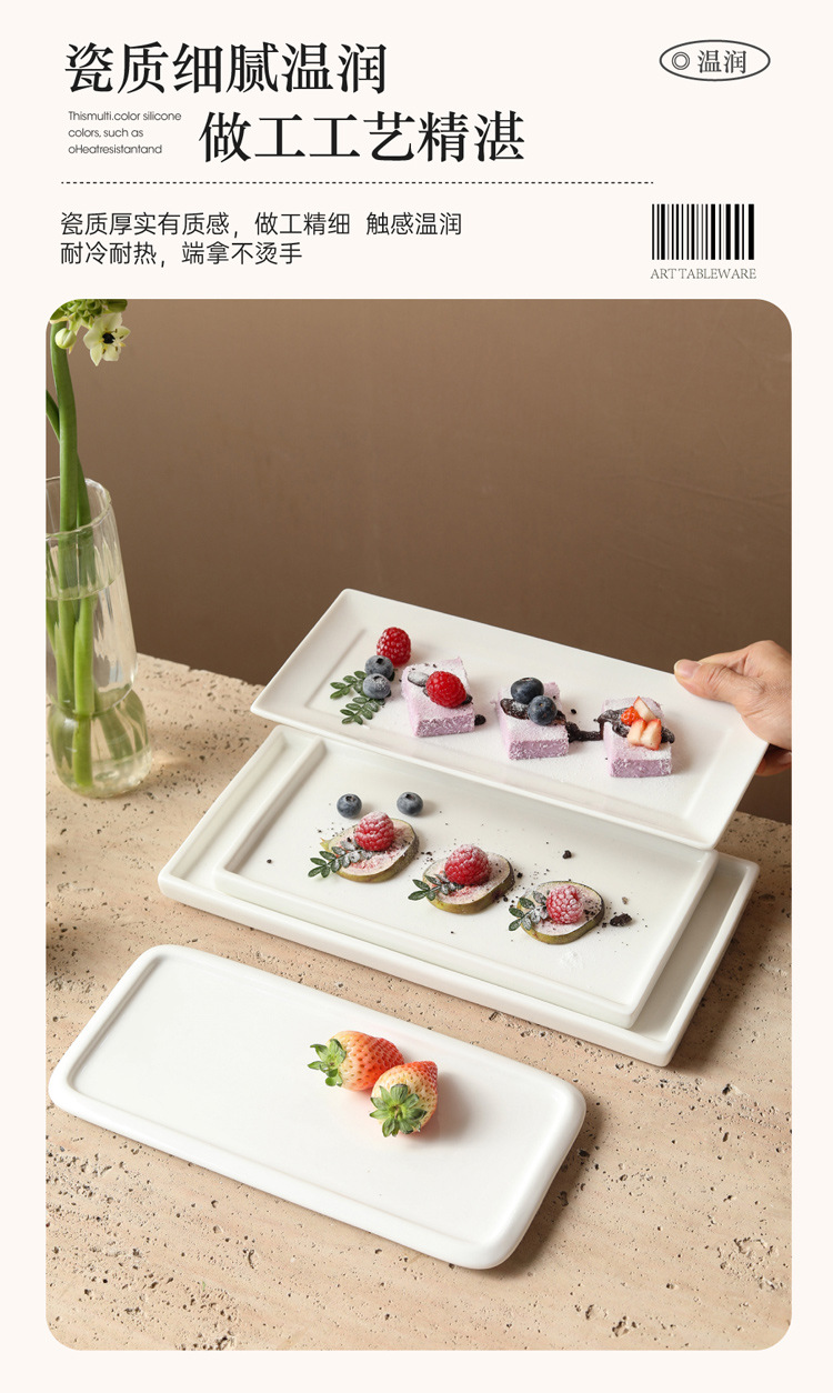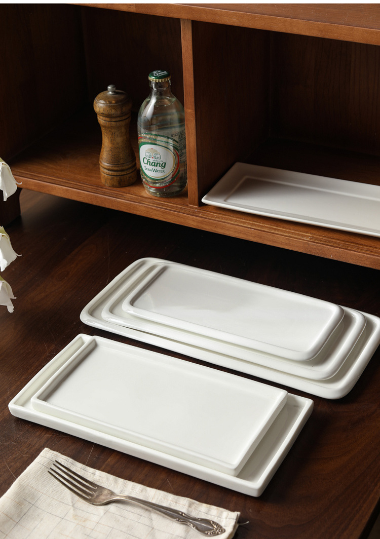 純白創意長条皿蒸し魚皿家庭用陶磁器食器寿司皿ホテルレストラン用長方皿