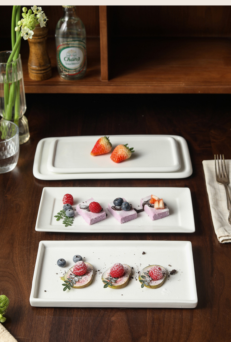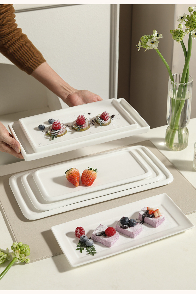 陶磁器のアイデアヨーロッパ式長方形の午後のお茶の皿の洋菓子の皿のシンプルな洋食の食器のケーキのムースのデザートの皿