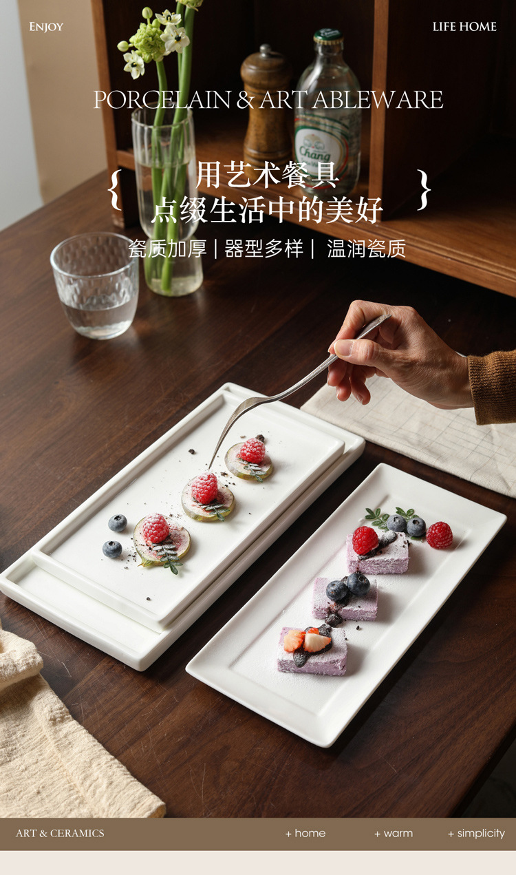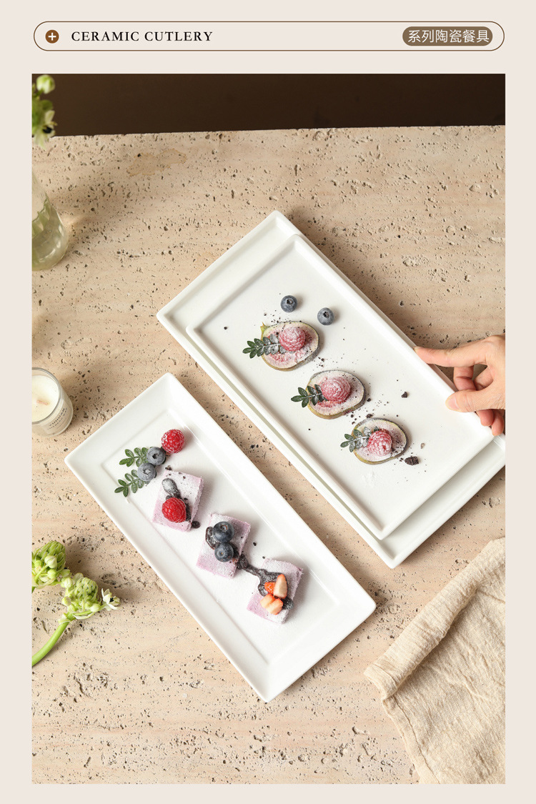 北欧ロングプレートセラミック洋風デザートペストリープレートホテルクラブクリエイティブデザートプレート洋菓子パンプレート