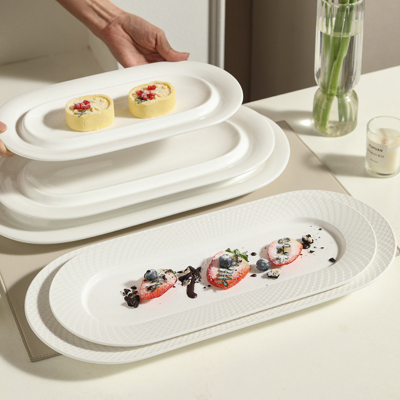 ヨーロッパ式陶磁器の長い寿司の皿の刺身のトレーの日の料理の皿のホテルのレストランのホテルの鶏の羽の皿の軽食のお菓子の皿