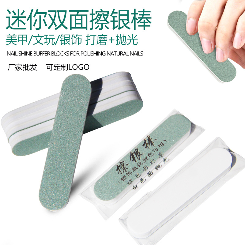 プロの銀拭き棒両面ダブル用研磨バー緑と白の文はネイルの銀飾りを遊んでいます。