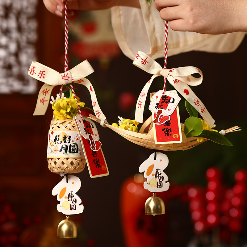 中秋节竹编小灯笼手工diy小船花灯材料包儿童发光古风中式装饰品