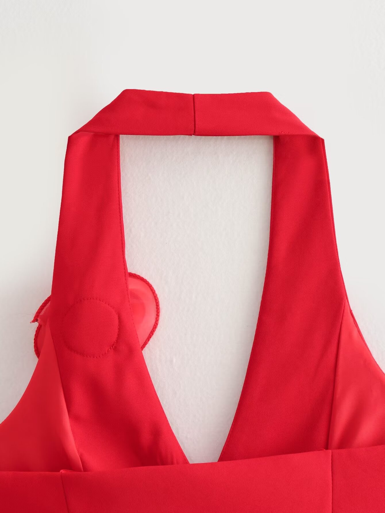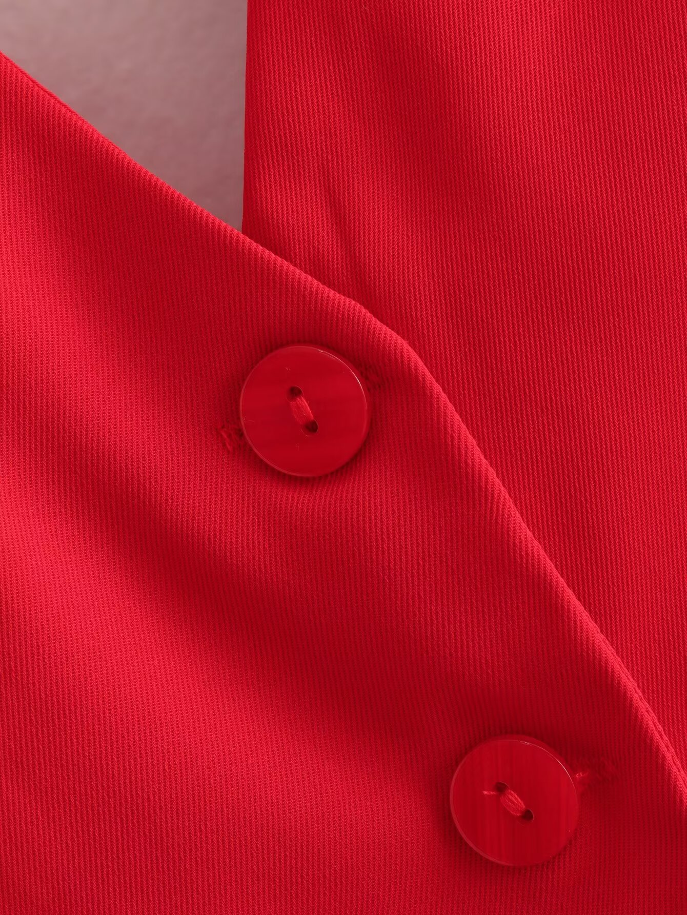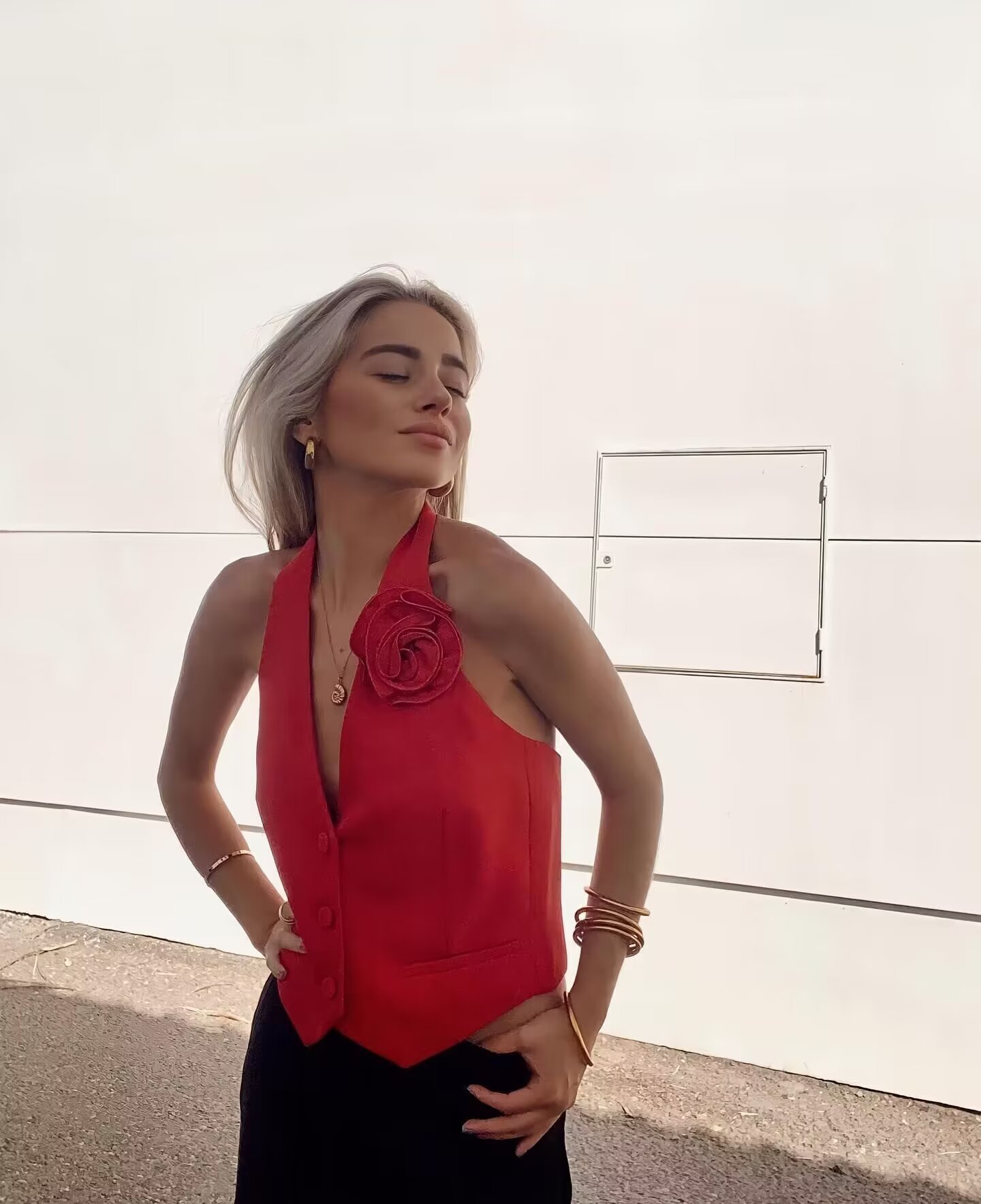 クロスボーダー2025新女装首vネック花飾り単列ボタンベストベストベストベスト
