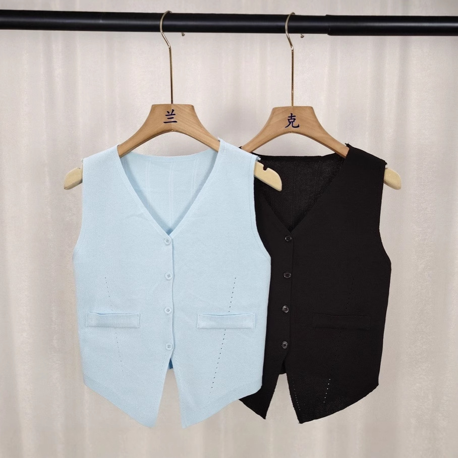 現物国境を越えた対外貿易女装2024年vネックボタン袖なしカーディガンシャツベスト小スーツ馬甲上着
