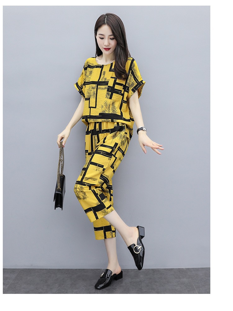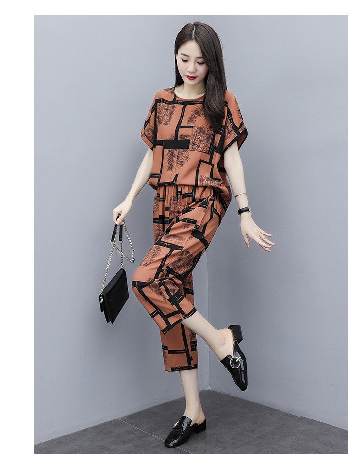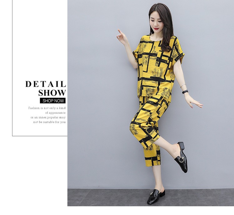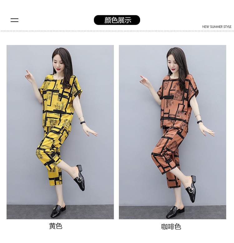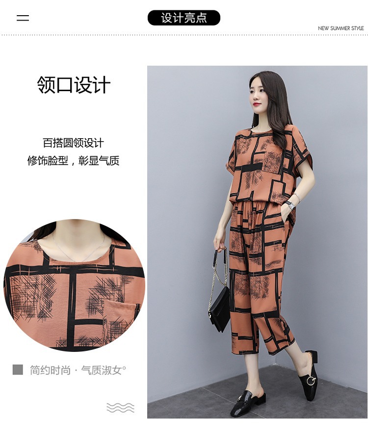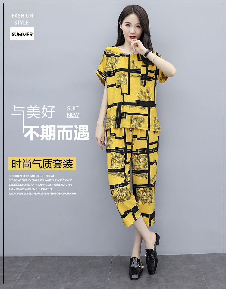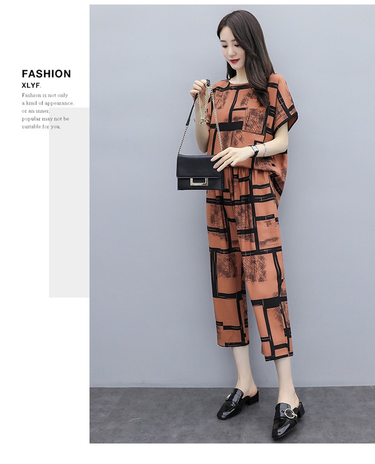 おしゃれな半袖スーツ 2025 夏プリントゆったり痩身大きいサイズレディースカジュアル七分ハーレムパンツ 2 点セット