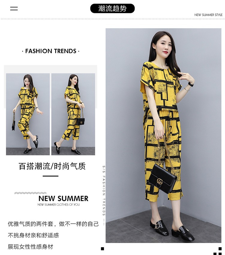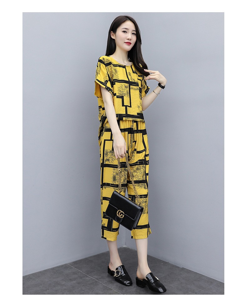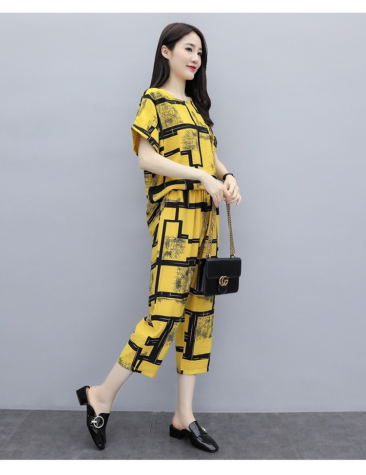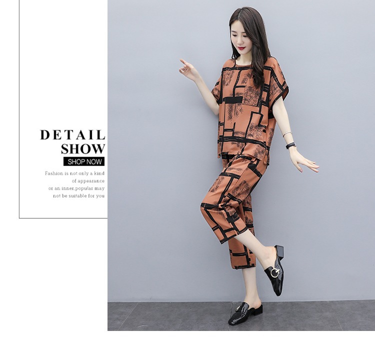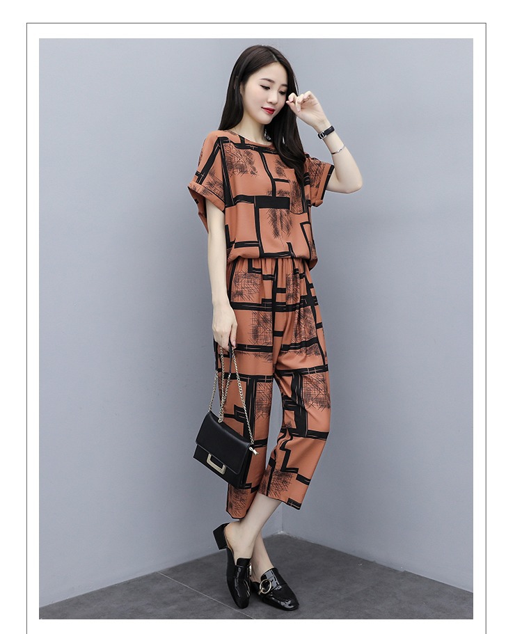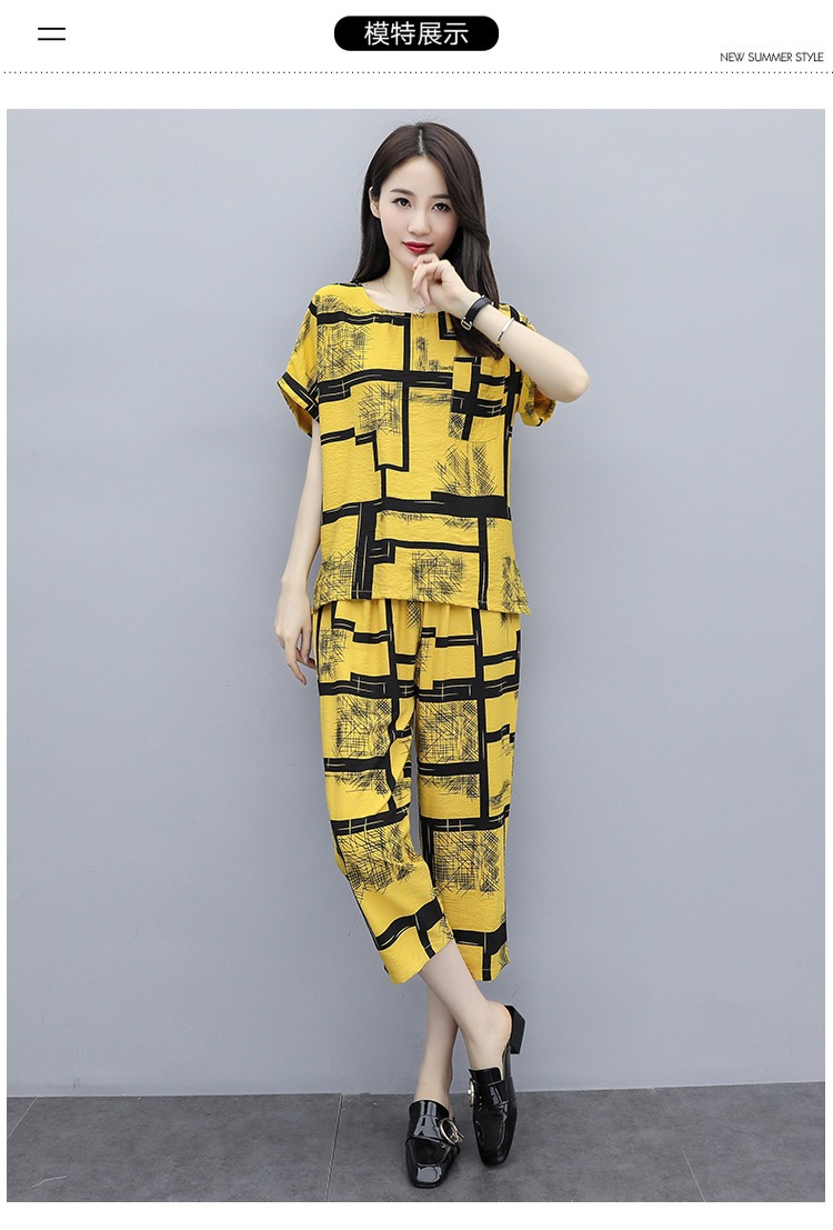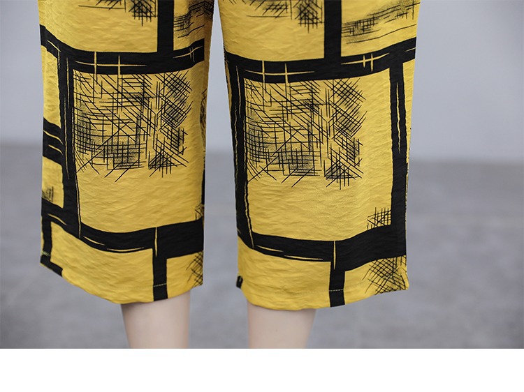 おしゃれな半袖スーツ 2025 夏プリントゆったり痩身大きいサイズレディースカジュアル七分ハーレムパンツ 2 点セット