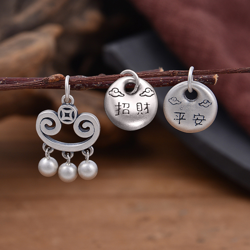 S999足銀金銭如意平安鎖ストラップ中国風ブレスレットネックレスアクセサリーdiy手串アクセサリー