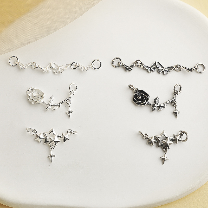 S925純銀素銀楽縁財福字ペンダント部品diy自作ビーズ編みブレスレットアクセサリー卸売り