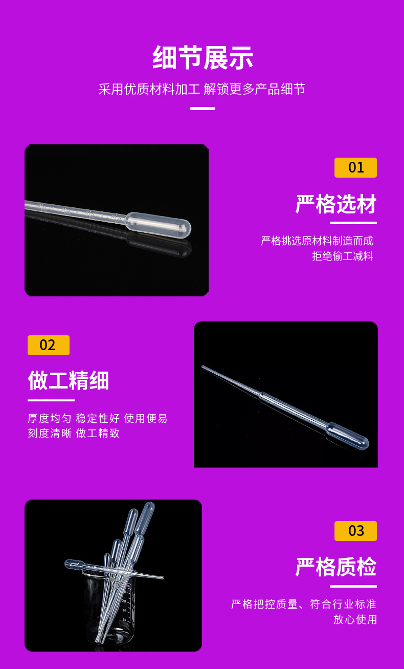 一次プラスチックスポイト0.3ml、67mm70mm 95mm微量スポイトスケールバストルスポイトメーカー