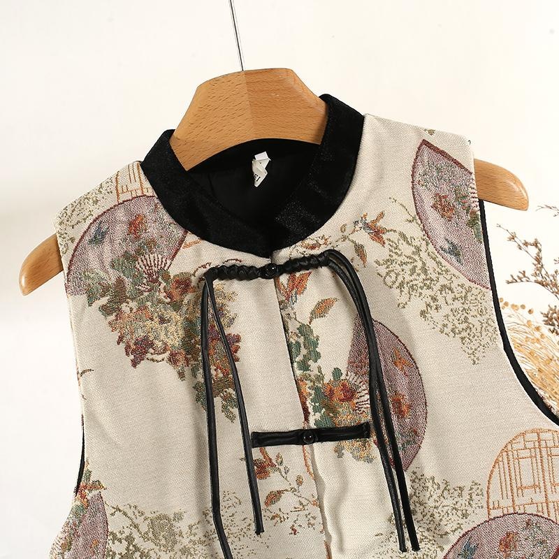 2025年新作中国風錦織ジャカードベスト レディース 秋新作 レトロ改良唐装風民族風ベスト アウター