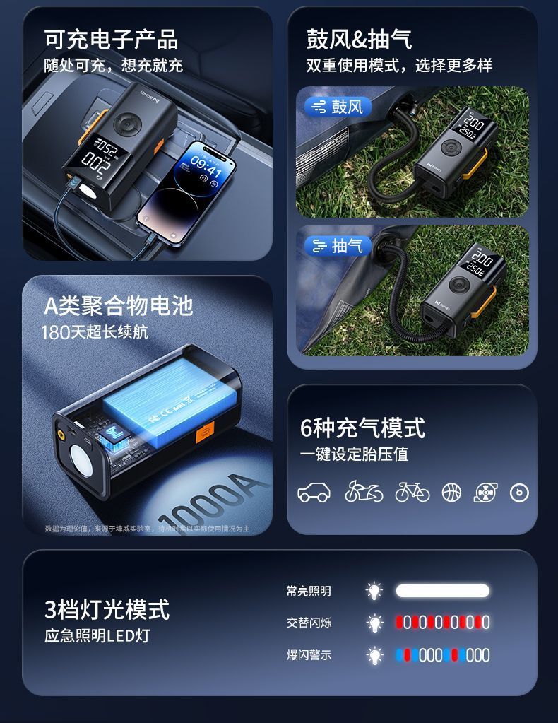 【ブランド65万+】BUWEI ジャンプスターター 多機能エアポンプ 大容量