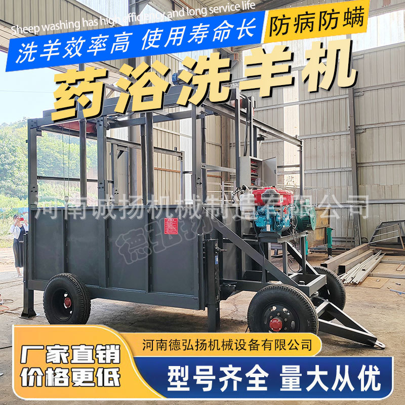 リフトケージ式薬浴羊洗浄機、ディーゼルエンジン駆動、独立排水システム、家畜・家禽用薬浴機