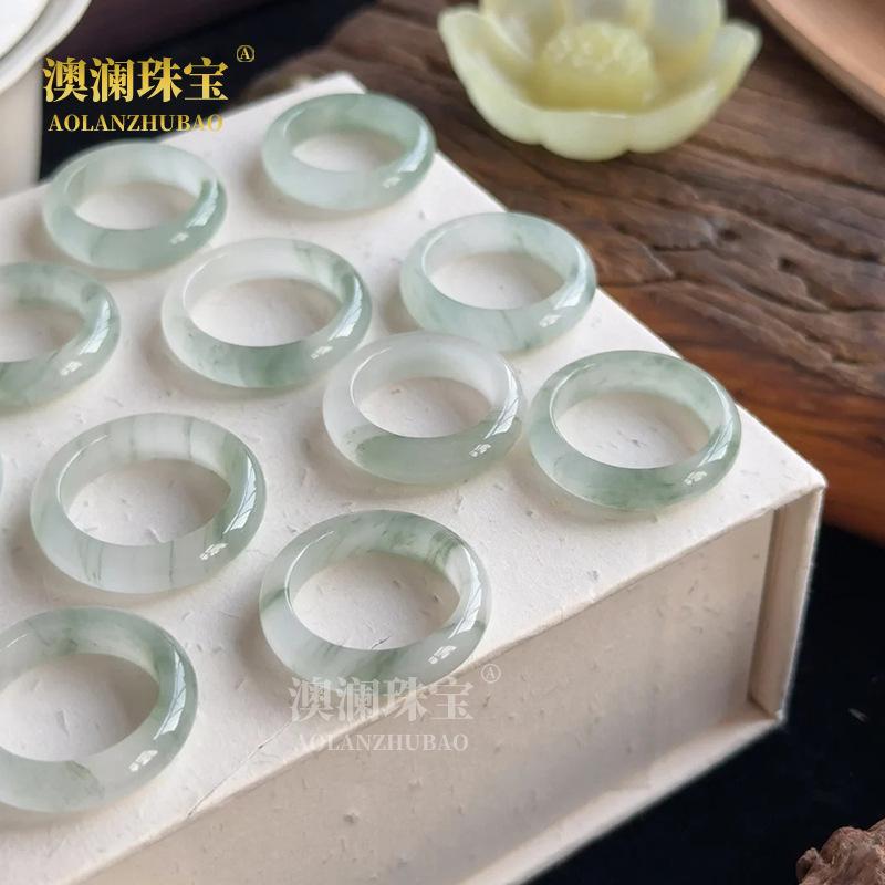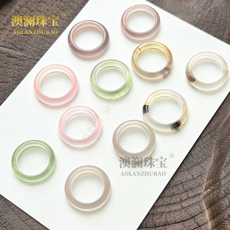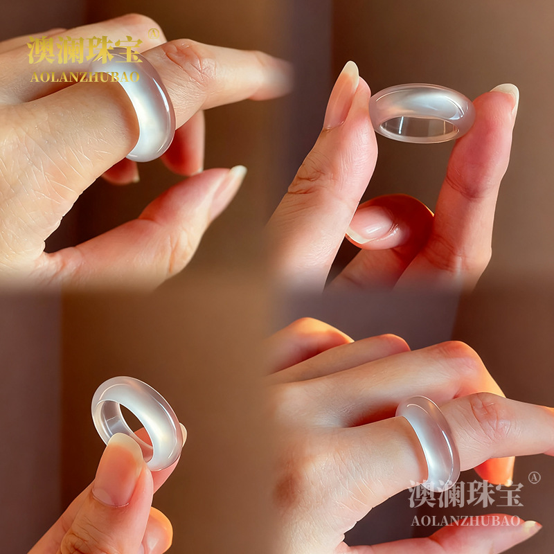 ナチュラルホワイトカルセドニーリングアイスカラフル瑪瑙翡翠レディースシンプルランニングリングテールリング中国風プレーンリングファインリング