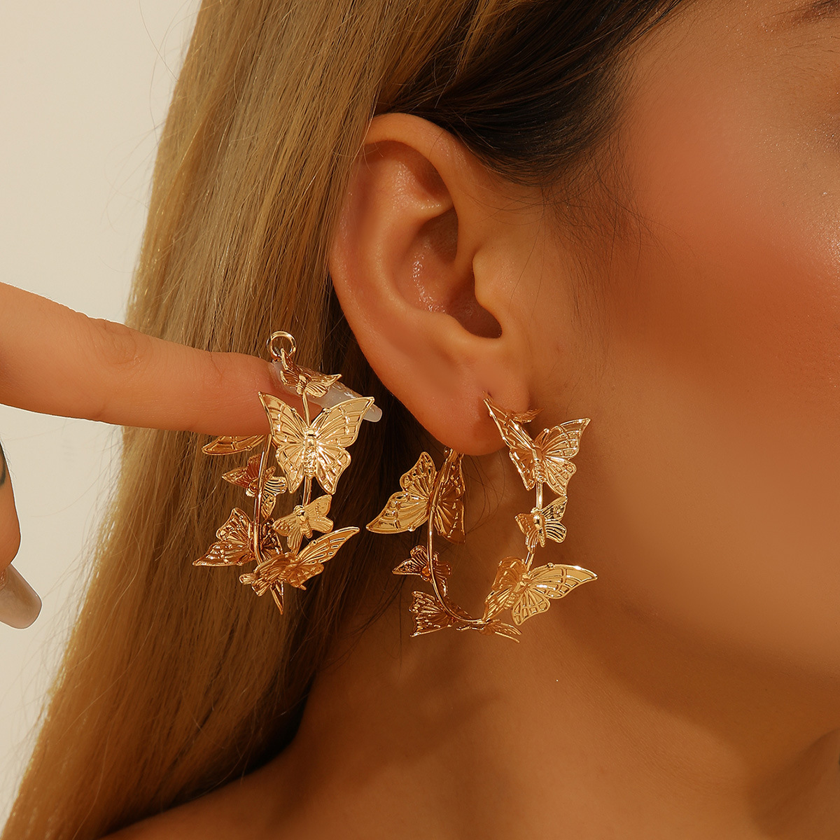 ヨーロッパとアメリカの貿易 1 ペアのパーソナライズされたクリエイティブな大きなサークル蝶動物 C 字型イヤリングタッセルレディース人気イヤリングイヤリング