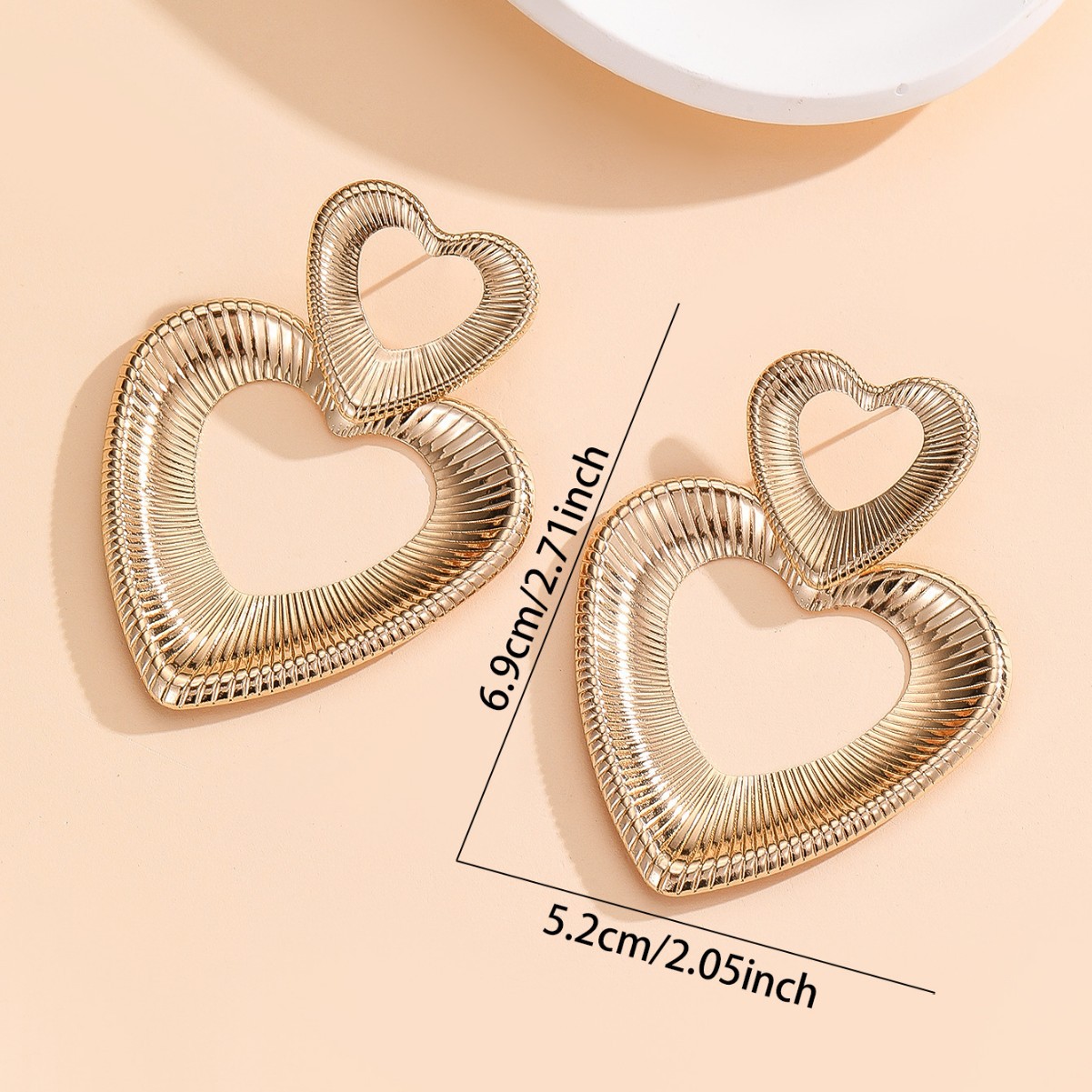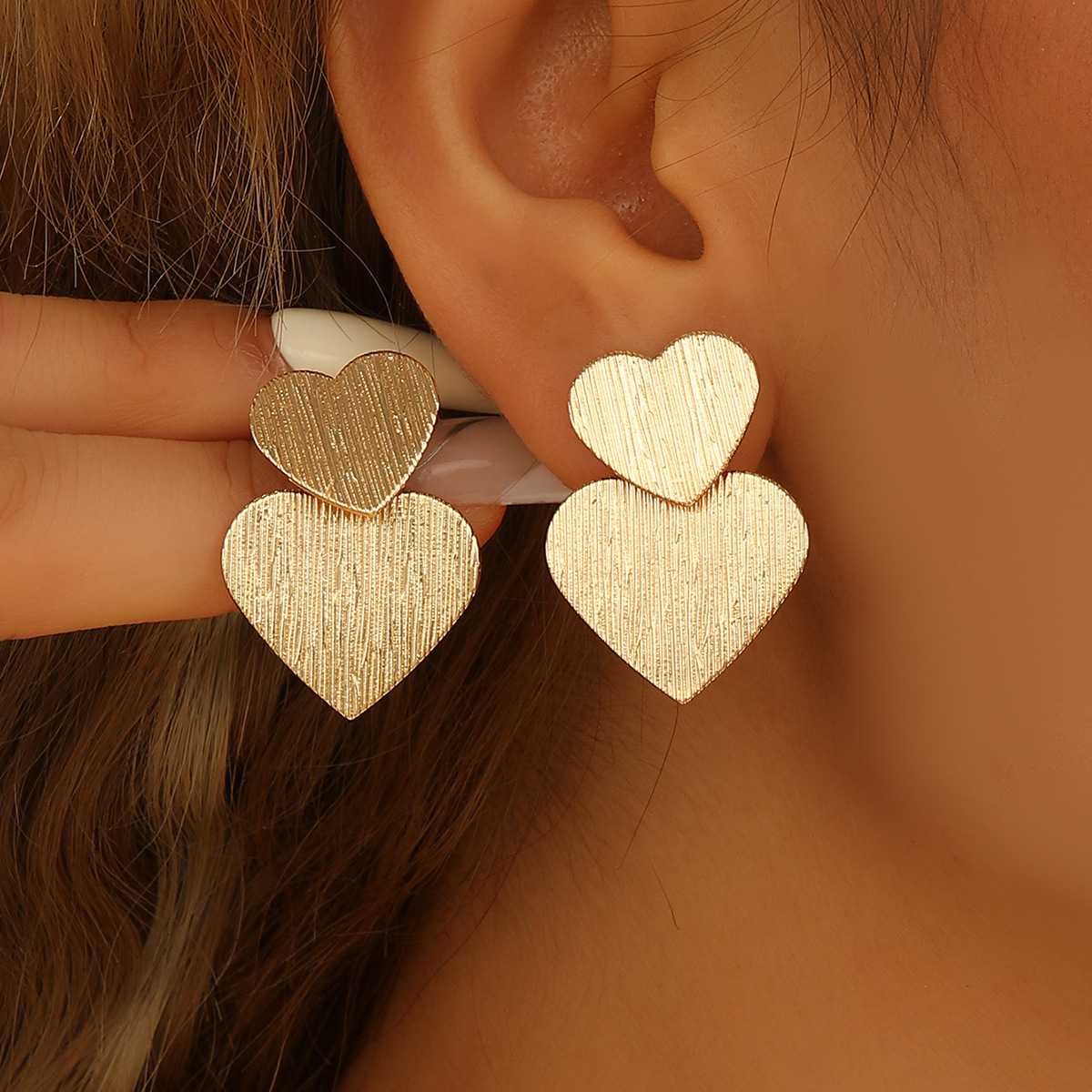 ヨーロッパとアメリカのクロスボーダーアマゾンロングラブイヤリングメタルスタイル人気のファッショナブルな幾何学イヤリング気質ハート型イヤリング